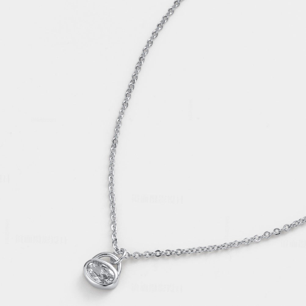 A delicate silver chain necklace featuring a polished bezel-set stone pendant. Clean and modern, it’s ideal for everyday wear—perfect worn solo for a refined look or layered with other chains for effortless styling.