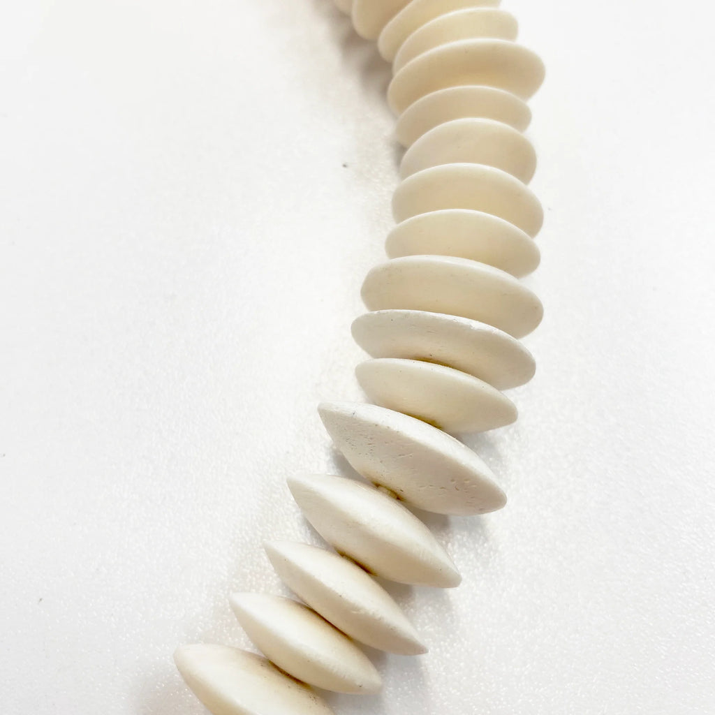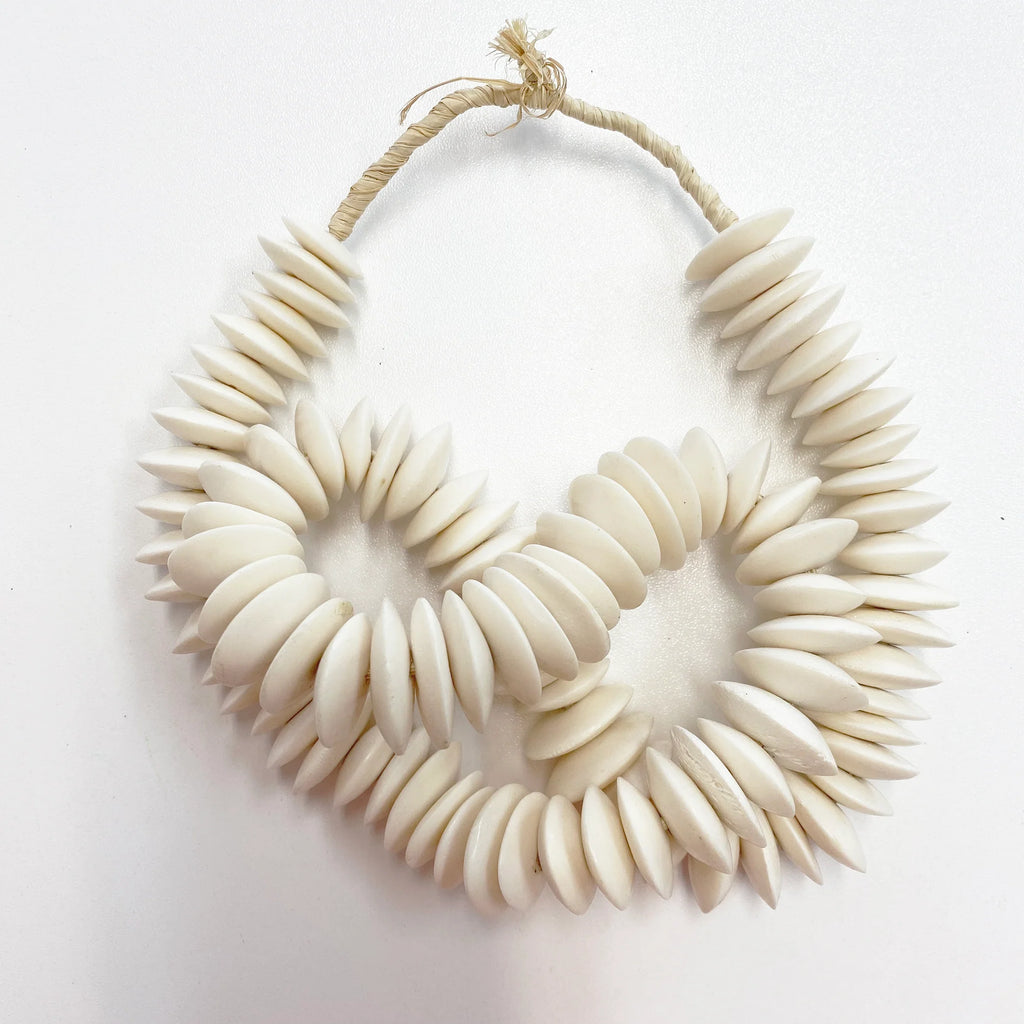 Story behind the product ~ Crafted from carved camel bone. These beads are decorated using technique's similar to batik, in which wax is applied in the desired patterns and then dipped into a thick black dye made from boiled tree sap. When the wax is removed, the dyed patterns remain.