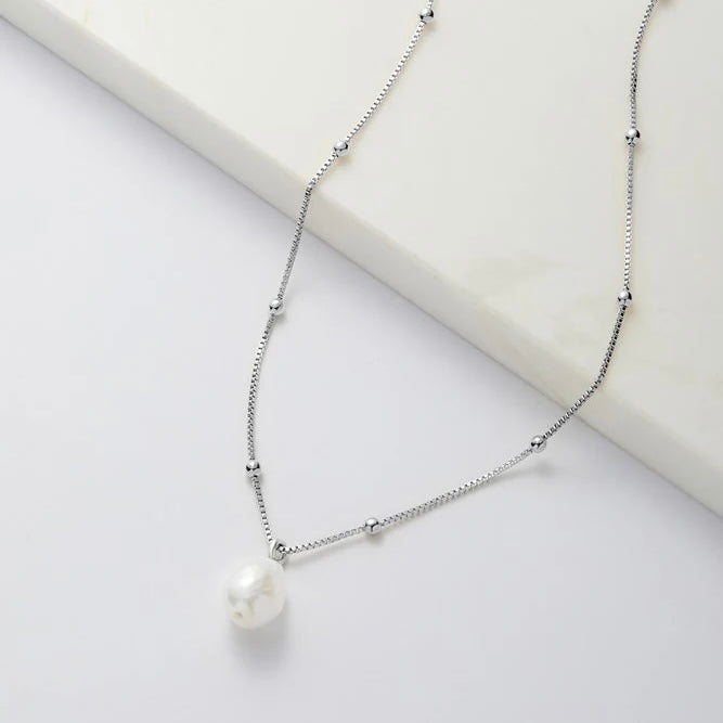 Rhodium plated/ Brass Base/ Freshwater Pearl