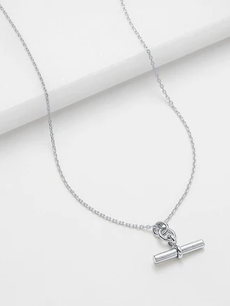 The Winnie Mini Necklace in silver embodies modern simplicity with its bar pendant. A chic staple piece for layering or wearing solo.
