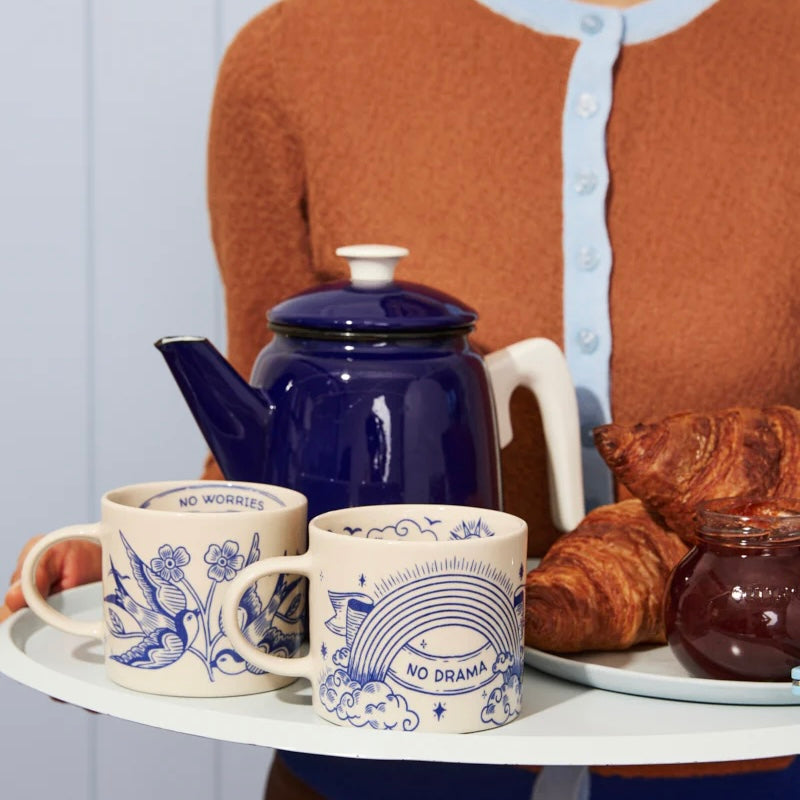 Take it easy with the Inked Mug No Drama, a playful nod to the ubiquitous Aussie saying "no dramas". Illustrated in classic blue ink, this handmade ceramic coffee mug is equal parts charming and practical. Perfect for your morning brew, it's a relaxed reminder to keep things simple. A thoughtful gift for coffee lovers and a daily dose of laid-back style.