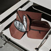 Hand wash below 40°C with mild detergent. Do not tumble dry, dry clean, or iron. Avoid direct sunlight, high heat, or heavy compression when storing.