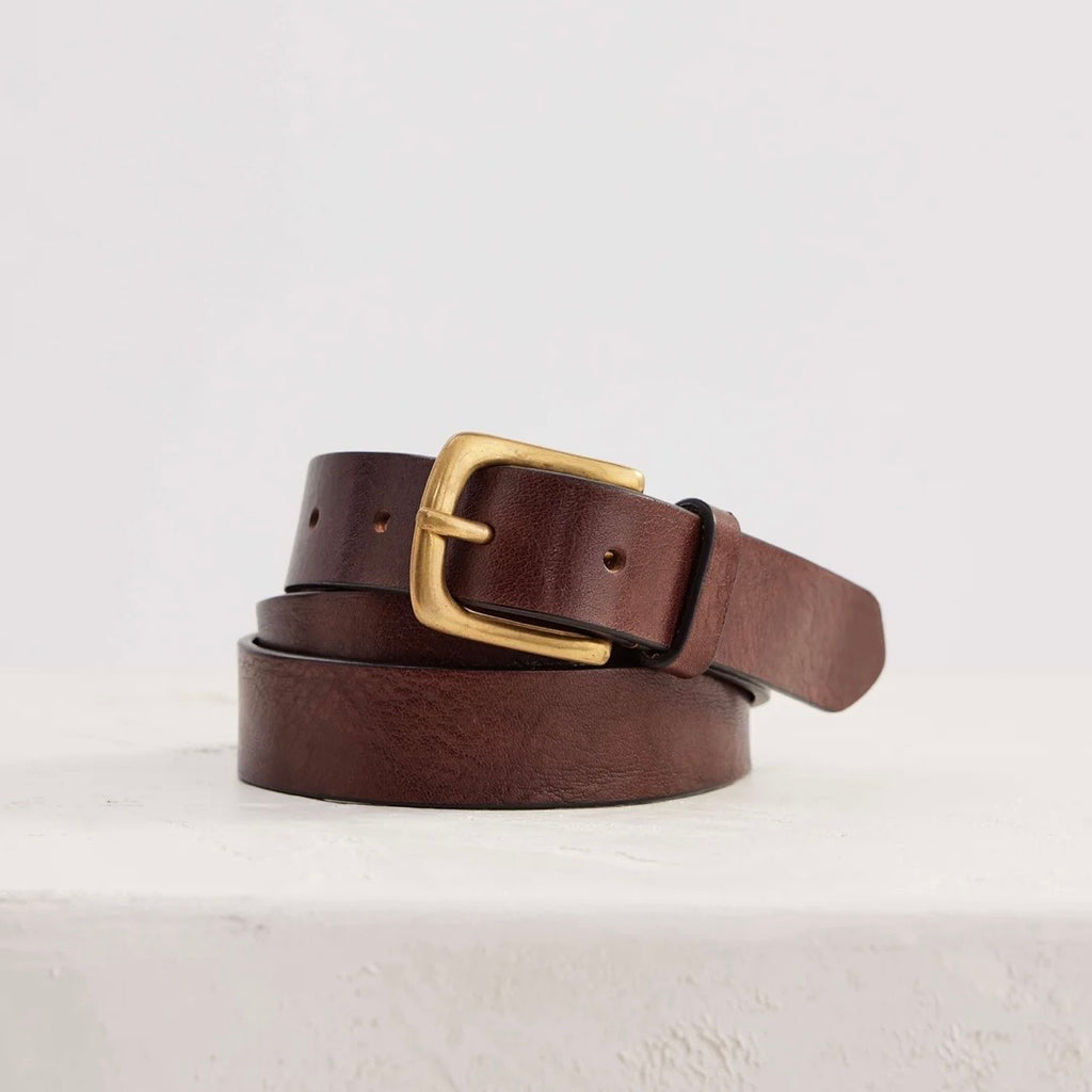 Made from Italian vegetable tanned leather with a solid brass buckle. Available in four sizes - all come with seven adjustable holes. 2.5cm wide.