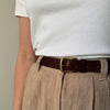 The Belt 01 is the only belt you need. Italian vegetable tanned leather is complemented by a solid brass buckle in a classic and versatile style. Each size has 7 adjustable holes making it wearable on the hip or around the waist. The first belt in our series is the perfect staple for everyday or event wear.