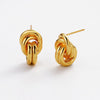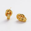Polished gold knot stud earrings with a smooth, sculptural finish—timeless, minimal, and effortlessly chic for everyday wear.