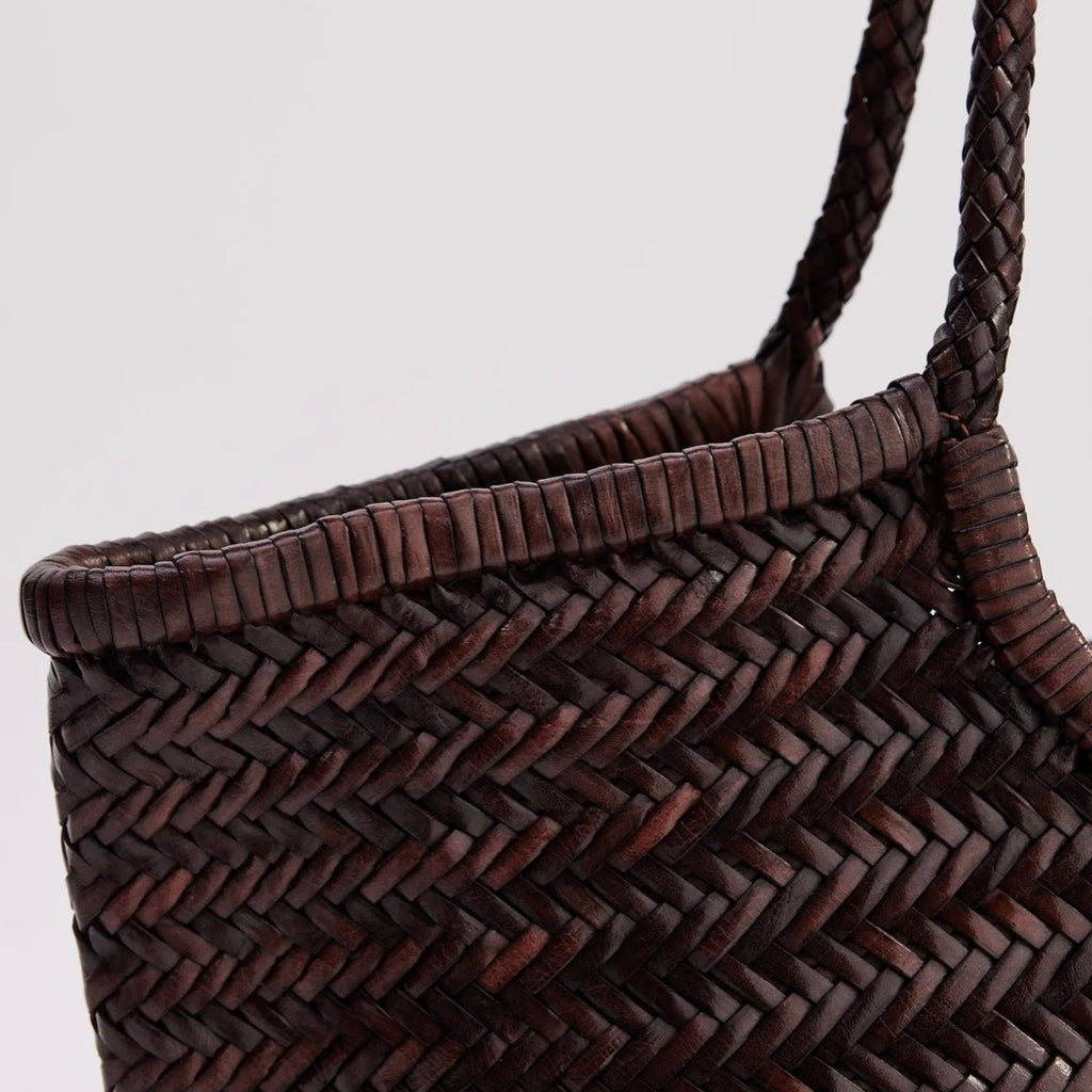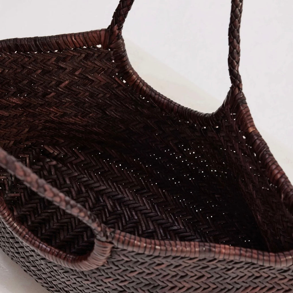 The Cove Bag is a shoulder bag made from hand-woven leather. This traditional style basket bag has a sculptural curve and effortlessly elevates any outfit.