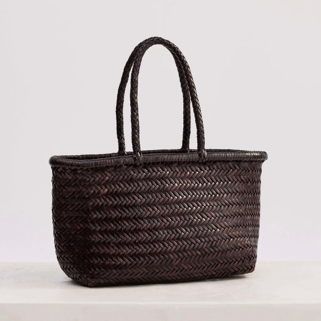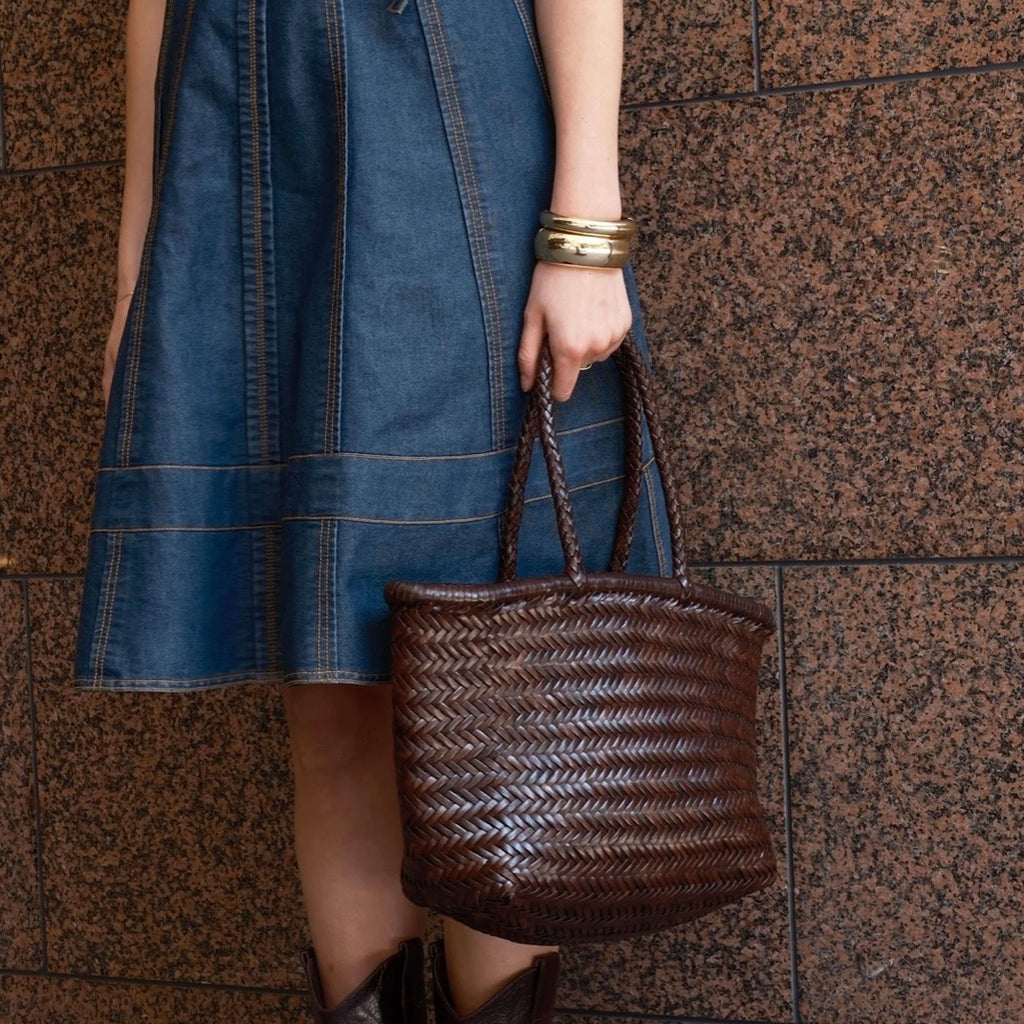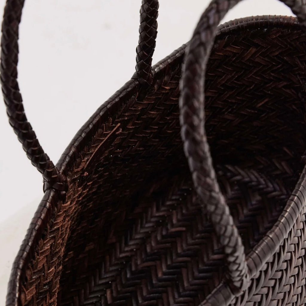 The Dune Basket is a shoulder bag made from hand-woven leather. Lightweight and practical, the Dune Basket is a traditional style basket bag in a medium size.