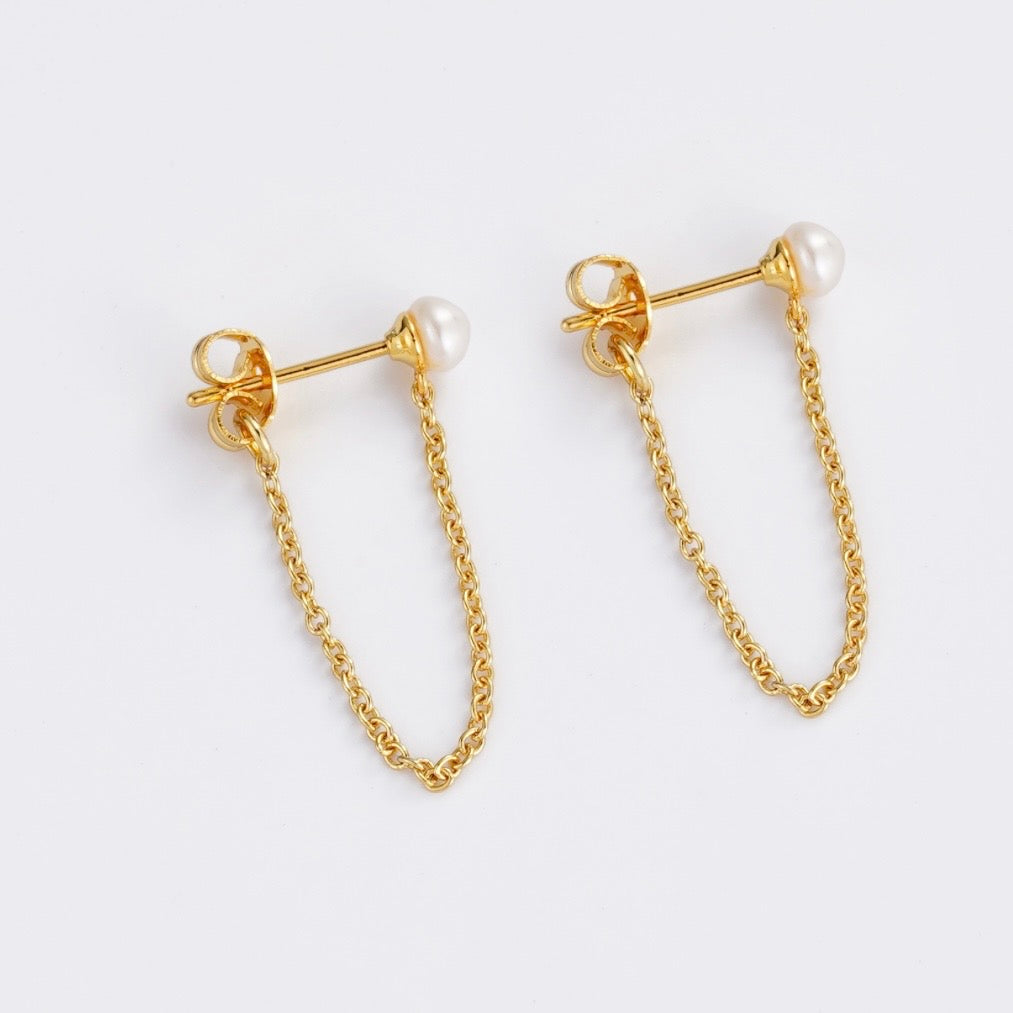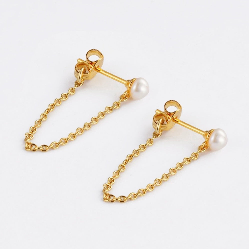 The Pearl Chain Wrap Earring is a modern take on a classic stud. Featuring a small pearl set in a sleek bezel and a delicate gold chain that wraps elegantly around the ear, this style blends subtle sparkle with edgy sophistication. Perfect for layering with other studs or hoops, it’s a versatile piece that transitions effortlessly from day to night.