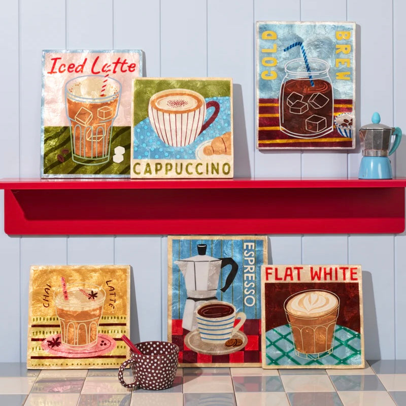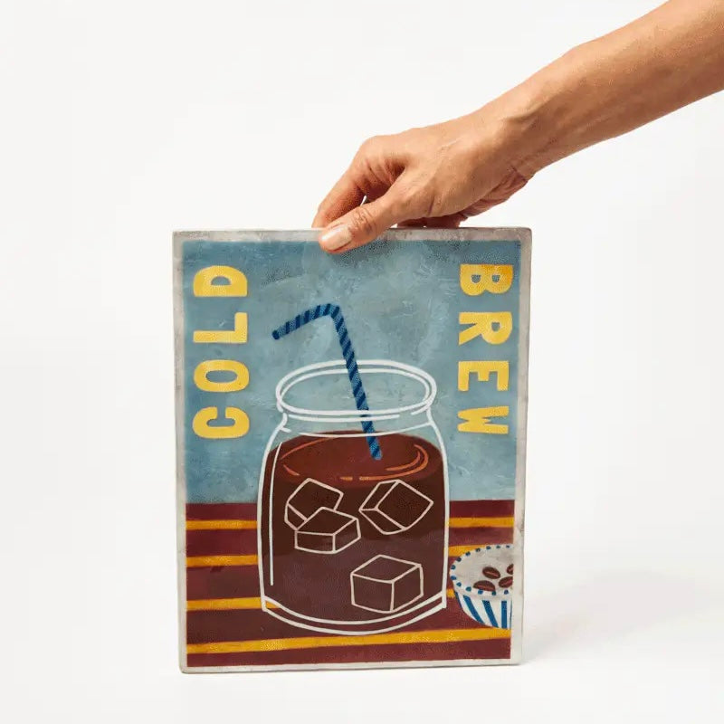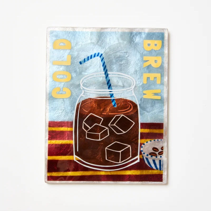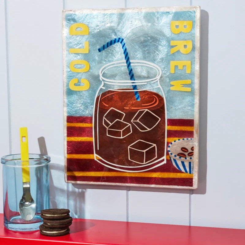 Refreshing and bold, just like its namesake. The Barista Cold Brew wall art is designed in Sydney, painted in the Philippines, and crafted from natural capiz shell. Featuring a mason jar brimming with ice cubes, it's a playful take on coffee culture that doubles as kitchen art wall decor. Lightweight and ready to hang, it's perfect for styling your space or gifting to coffee lovers!