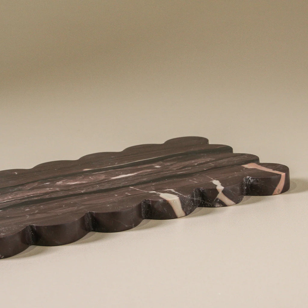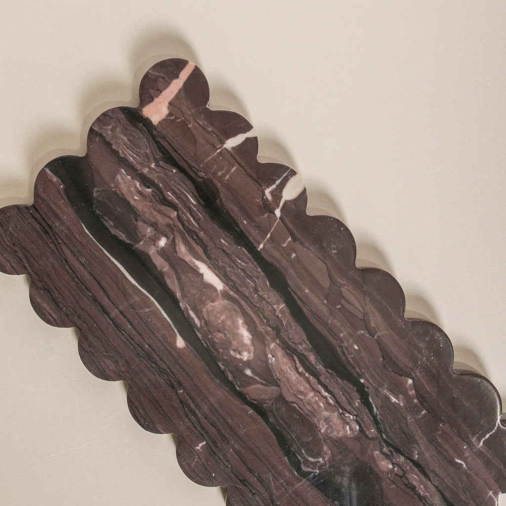 This flat, rectangular marble board features gently scalloped edges that soften its silhouette, offering a tactile and elevated platform for serving cheese, charcuterie, or styling your tabletop. Available in three dreamy pastel tones—Mint, Pink Lagoon, and Bruno Pink—each cheeseboard reveals unique veining and colour variation, ensuring a truly bespoke feel.