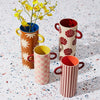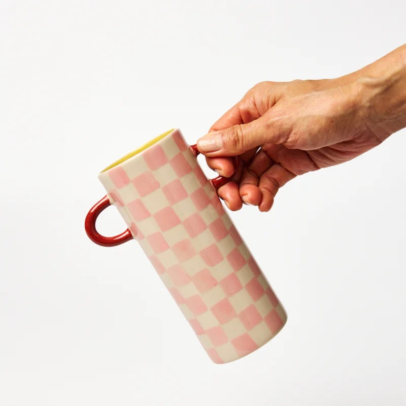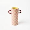 Sweet and versatile, the Griffe Bud Vase Pink Check is decorated with hand-painted candy-pink checks over pale ceramic. This handmade ceramic bud vase is just the right size for fresh clippings, posies, or simply as a cheerful accent. A joyful mix of pattern and form, it's a playful piece of decor for any room.