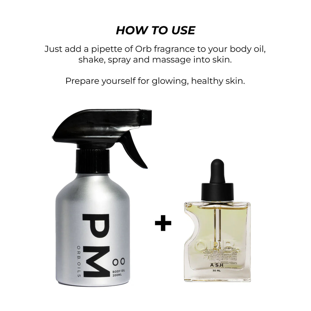 Just add a pipette of your favourite ORB Fragrance to your Body Oil. Shake well, spray and massage into skin for the ultimate glow.