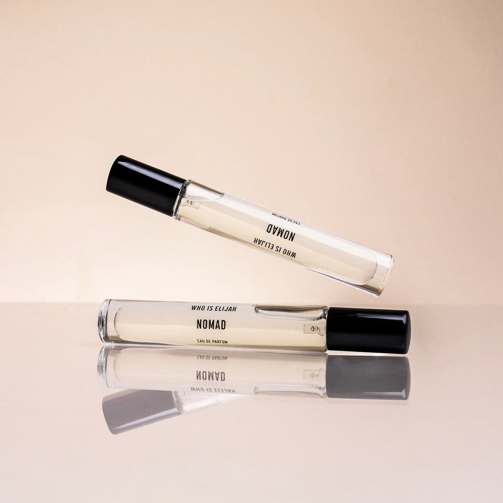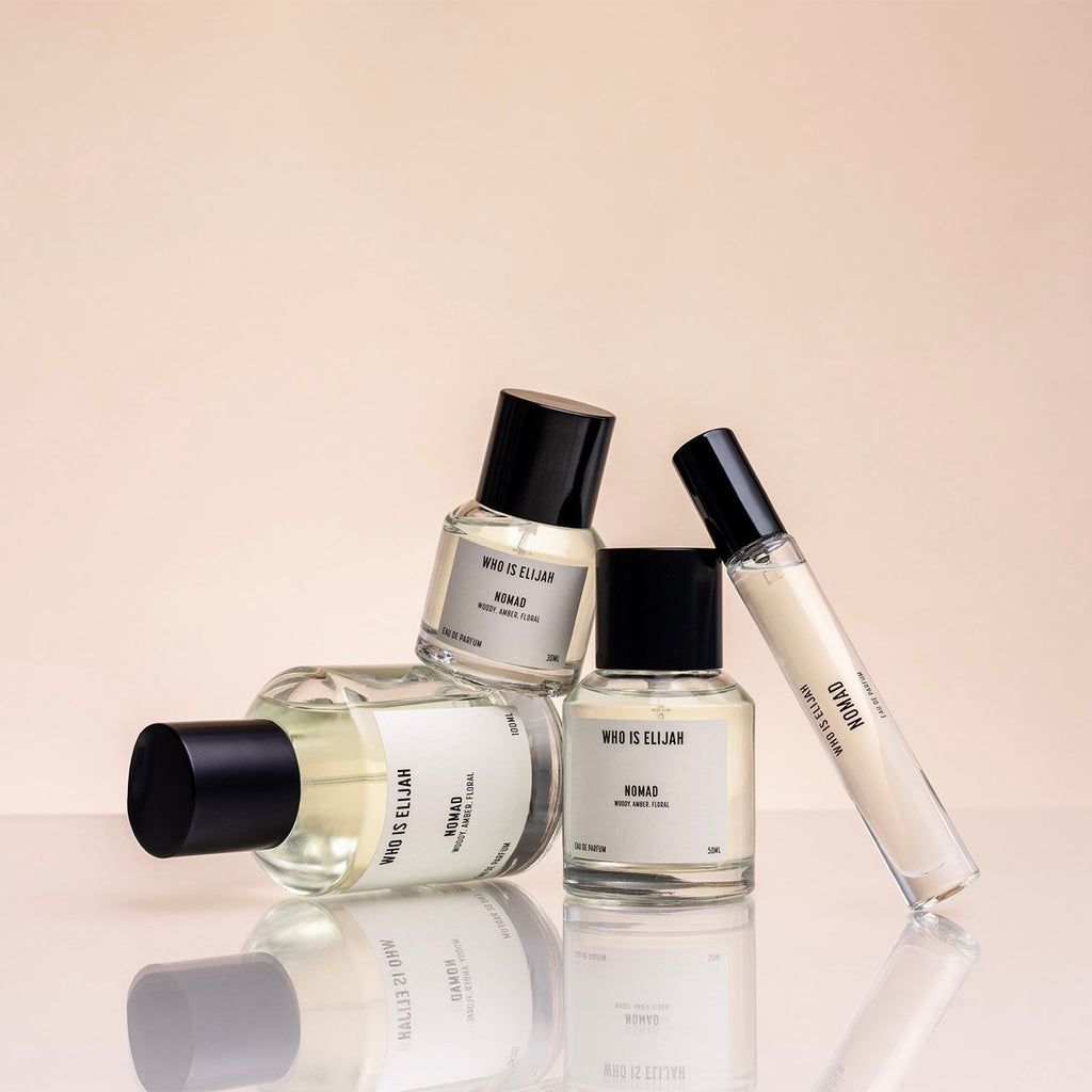 NOMAD is the one you notice before you know why. Bare skin under black silk, scent of amber, wood & floral. Eyes that never explain.