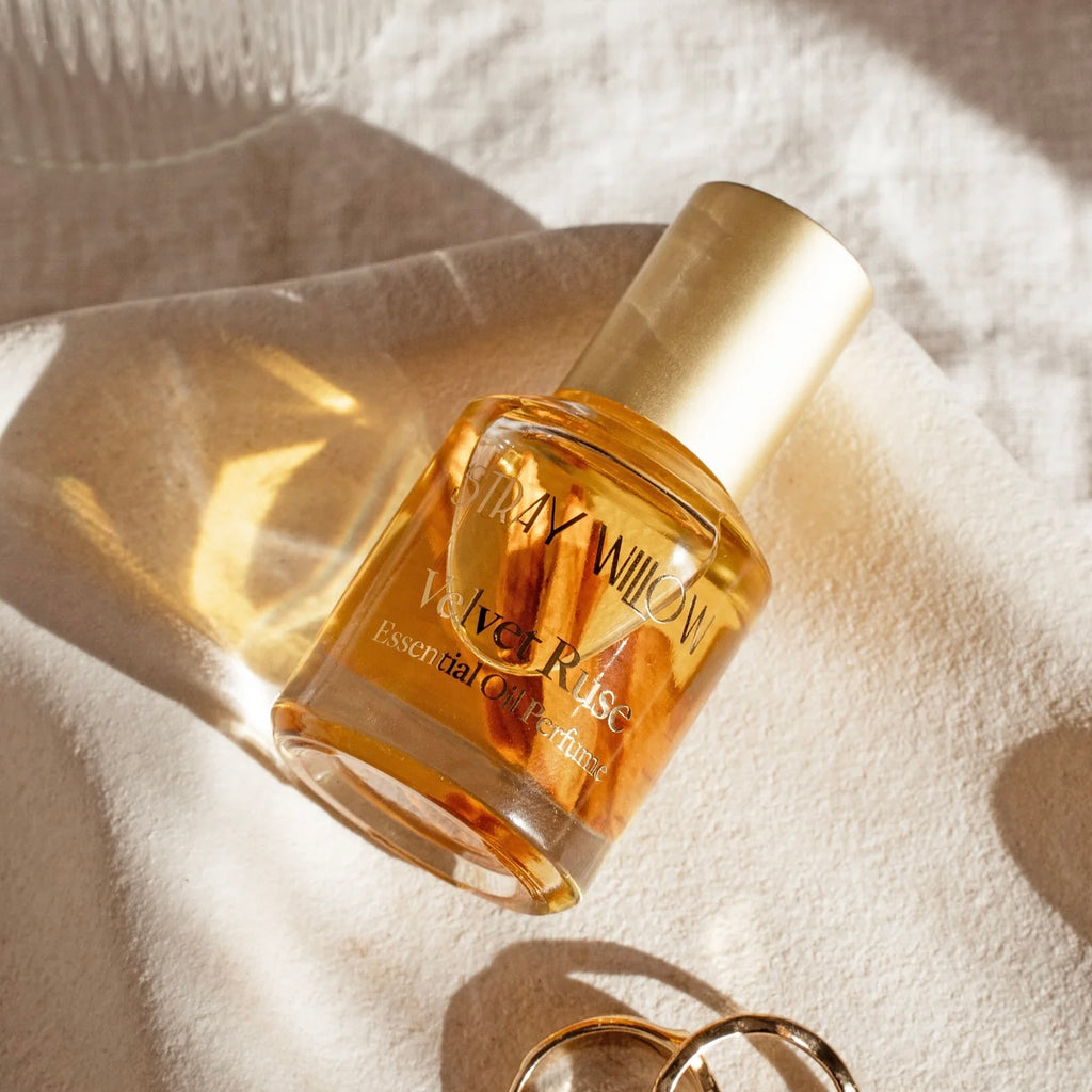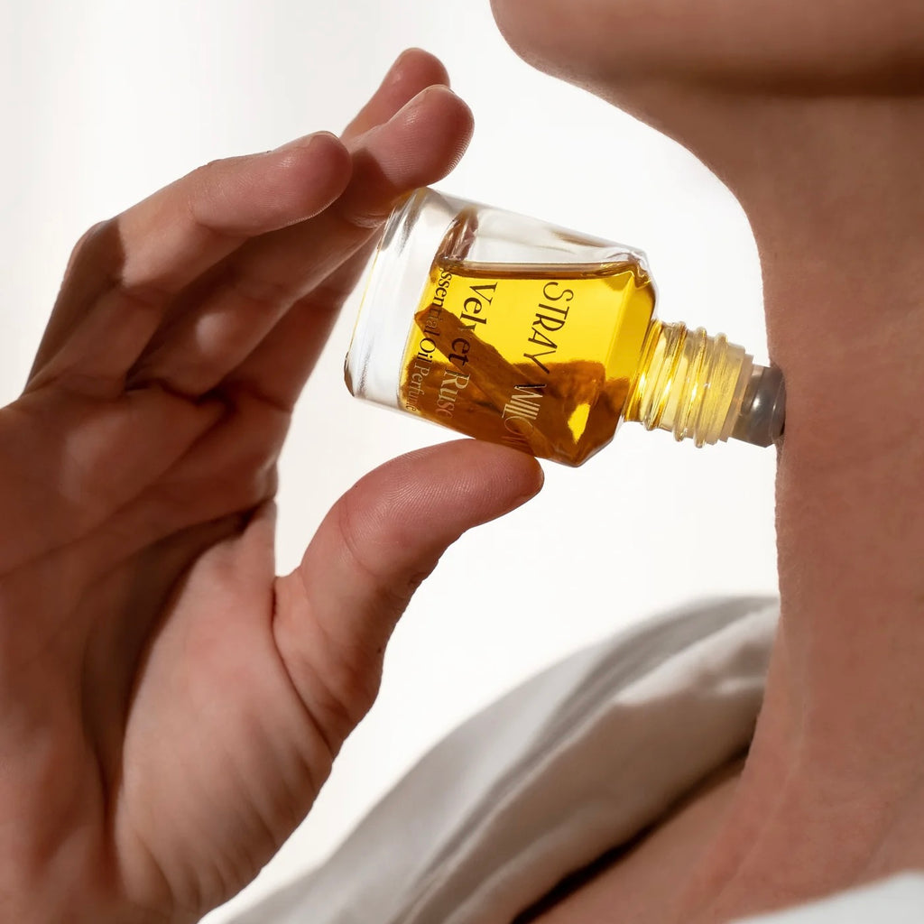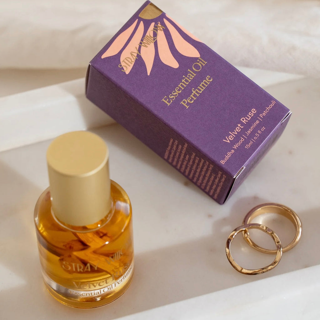 Velvet Ruse wraps you in soft warmth and quiet elegance. This Australian-made essential oil perfume roller blends nourishing Apricot and Coconut oils with grounding Buddha Wood and Sandalwood, lifted by bright Mandarin and delicate Jasmine. Subtle notes of Cinnamon and Clove add depth and calm confidence. Alcohol-free, synthetic-free, and sustainably packaged, Velvet Ruse is a mindful ritual—gently layered, beautifully grounding, and perfect for sensitive skin.