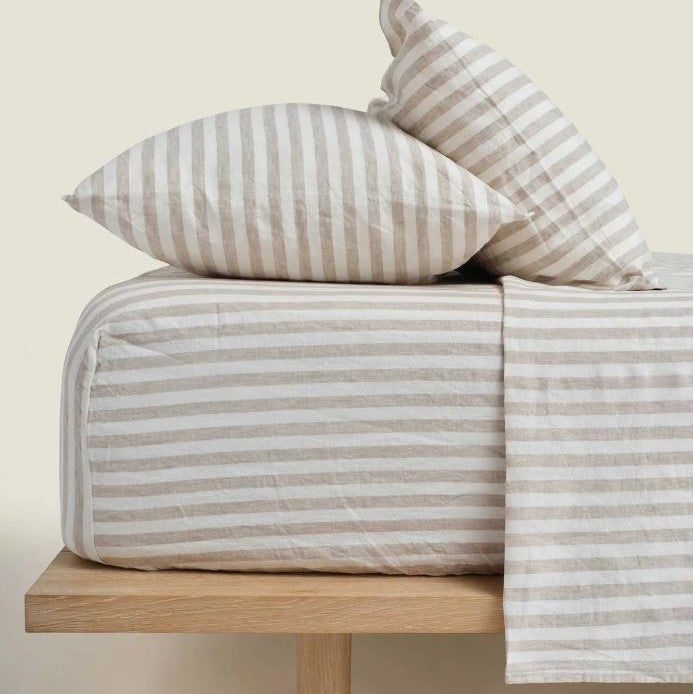 100% Linen Pillowcase Set | Wide Natural Stripes