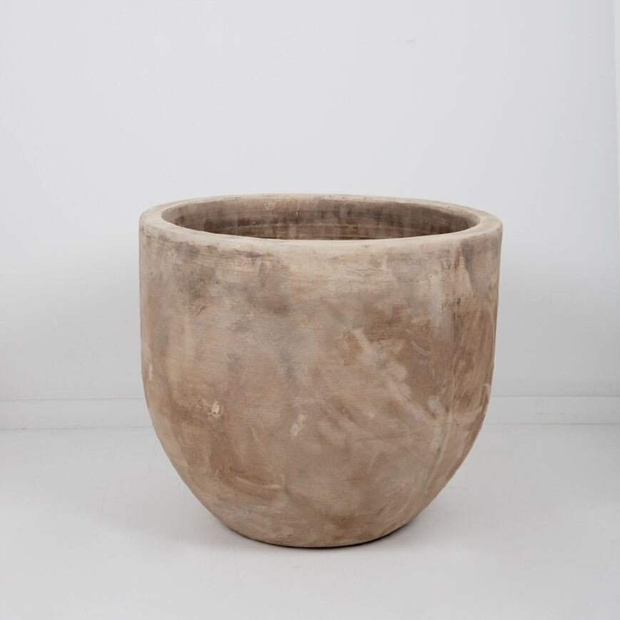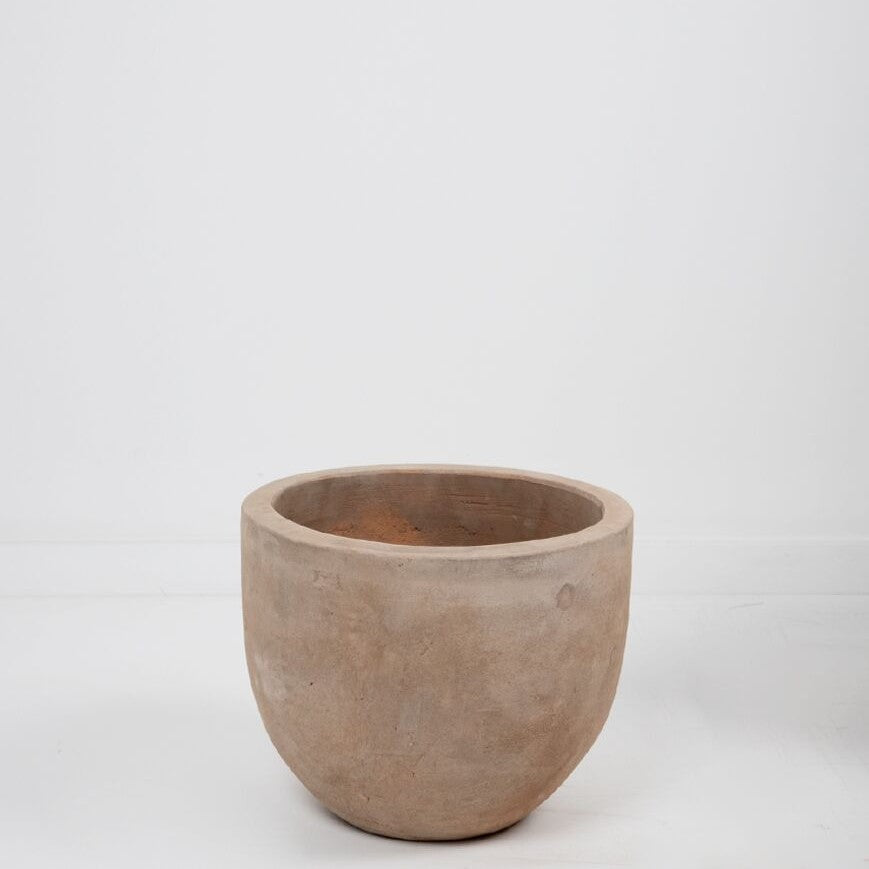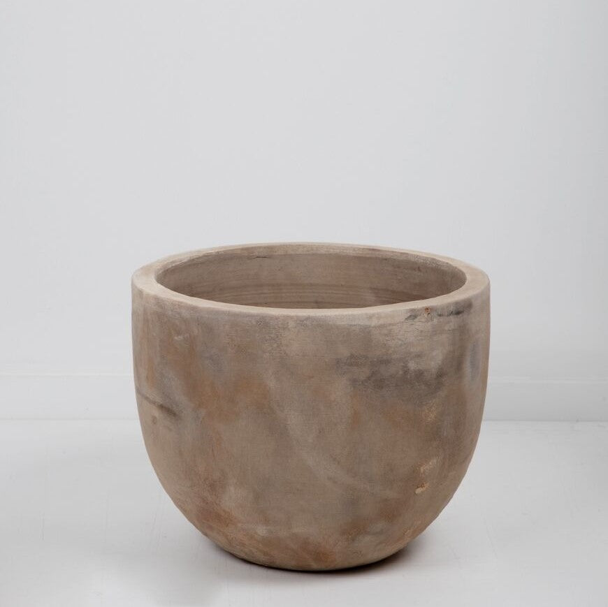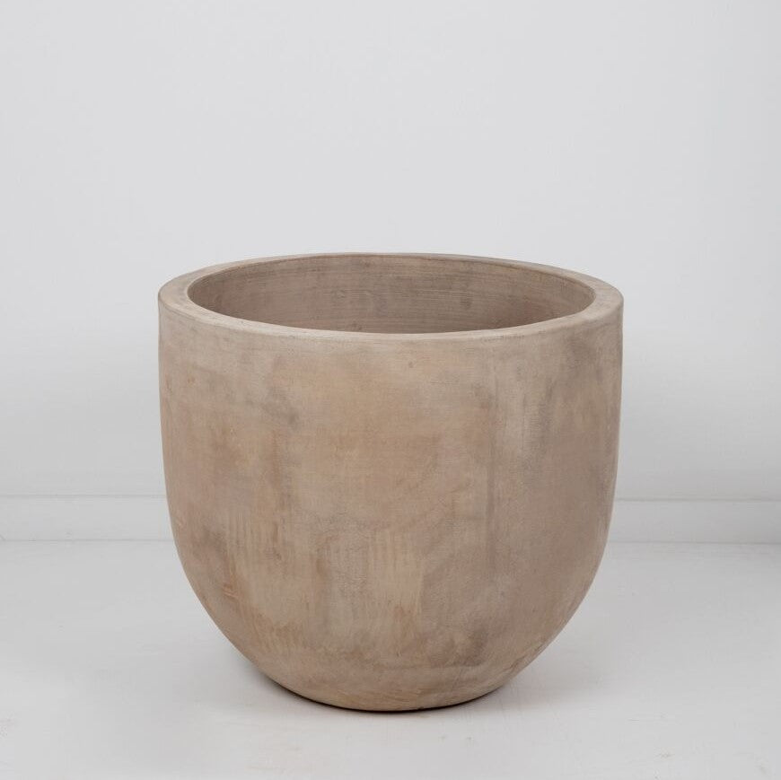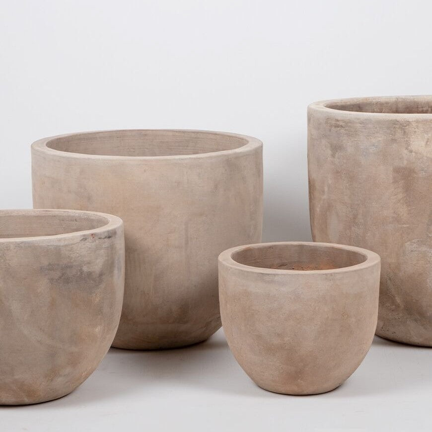 Perfectly minimal white-washed terracotta pot with drainage holes.