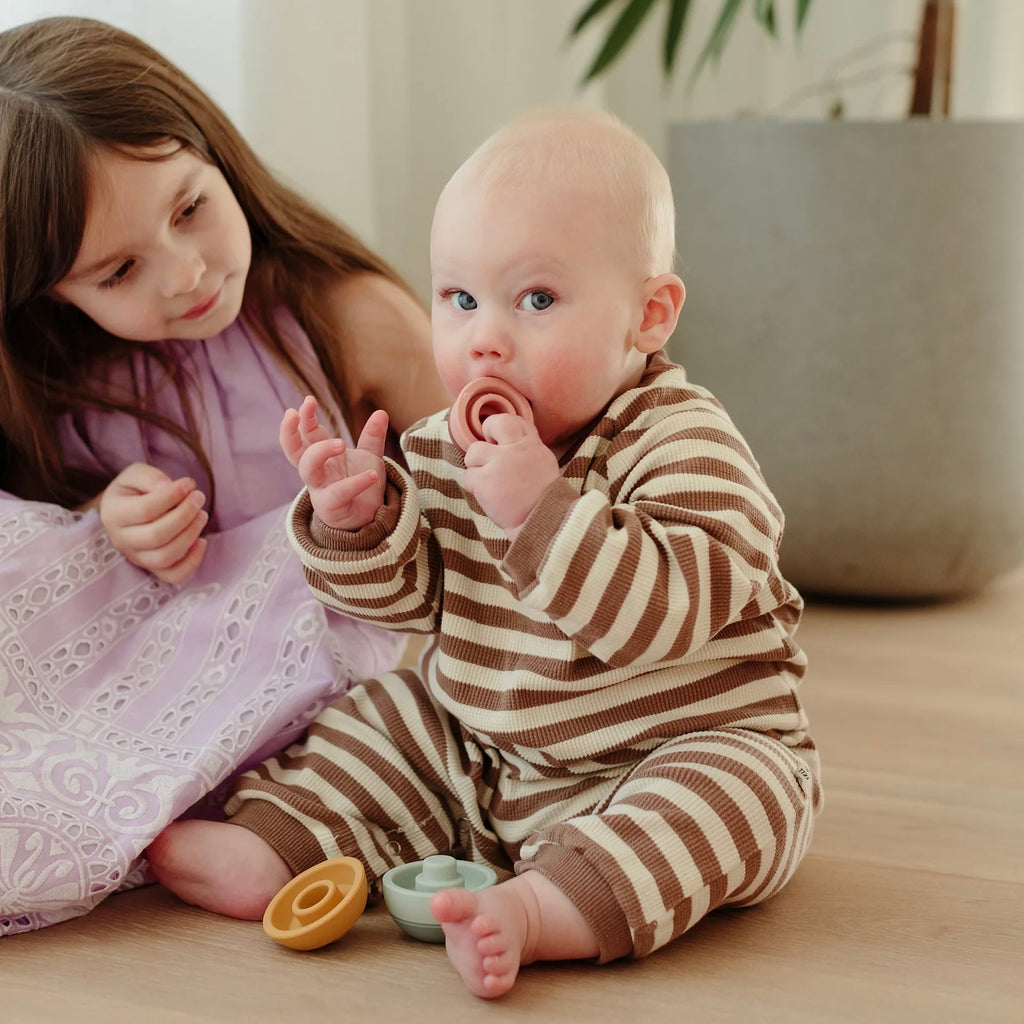 Elevate playtime with our Stackies collection - the ultimate versatile toy! Designed for endless building fun, these stackable wonders double as soothing teethers. Safe for the freezer, easy to clean and sterilise, they provide comfort and developmental play in one.