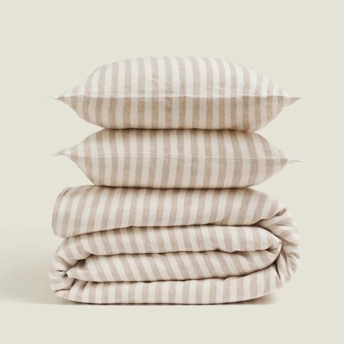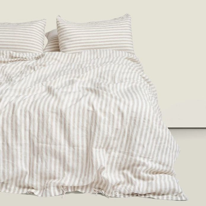 Make your bed your comfiest place with our 100% French linen duvet cover in Wide Natural Stripes. Our duvet covers are finished with ties to create a natural look and to ensure making your bed is easy.