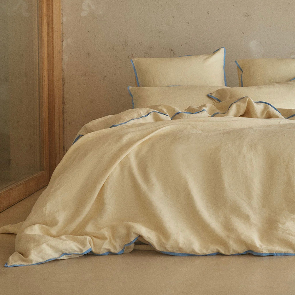 Available in six modern colourways and finished with a contrast trim, each linen piece is OEKO-TEX® STANDARD 100 certified, inviting you to transform your space.