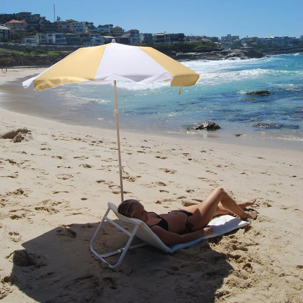 Seek all day shade with the ultimate beach companion. The Compact Beach Umbrella is functional and compact, ultra easy to carry with space for two to lounge beneath its canopy.