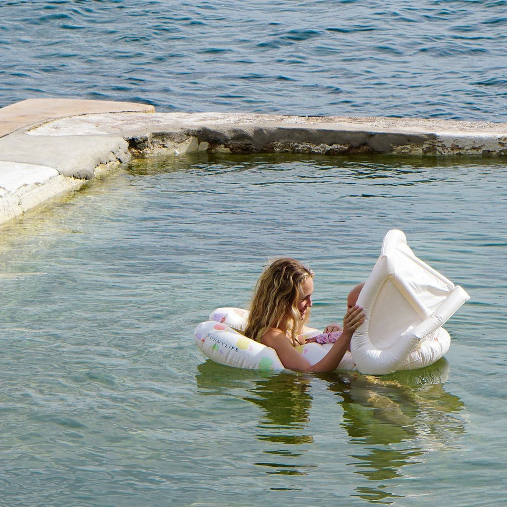 Let your little one in on the fun with the swim time baby range. The Apple Sorbet Float Together Baby Seat is made for the smallest members of the family with soft leg supports, an inflatable headrest, and a removable sunshade for sun protection. Plus it features a half ring so an adult can interact with the little one while it relaxes and floats in the water. Experience the best of summer with its adorable apple design and sweet pastel hues.
