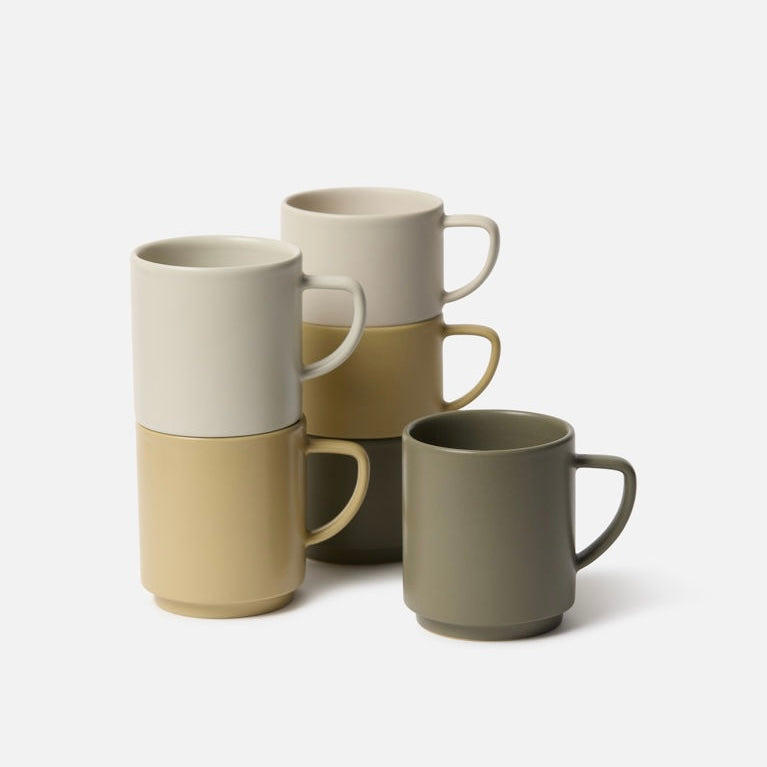 Enjoy your favourite hot drink in the stackable Copo mug. The design celebrates functional elegance with a matte colour range that is bold yet refined. The colour selection shows a softened and modernised 1950s palette–this reflects the era the mugs were inspired by.