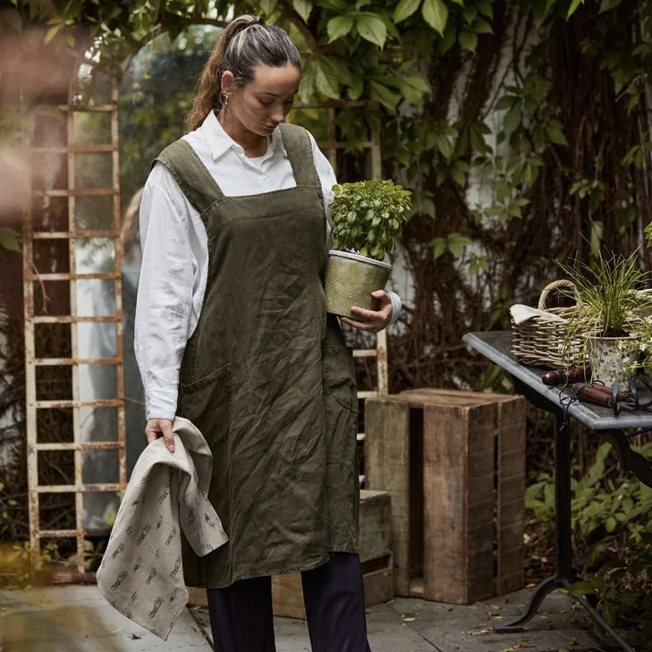 Cross Back Apron | Stonewashed Linen | Olive