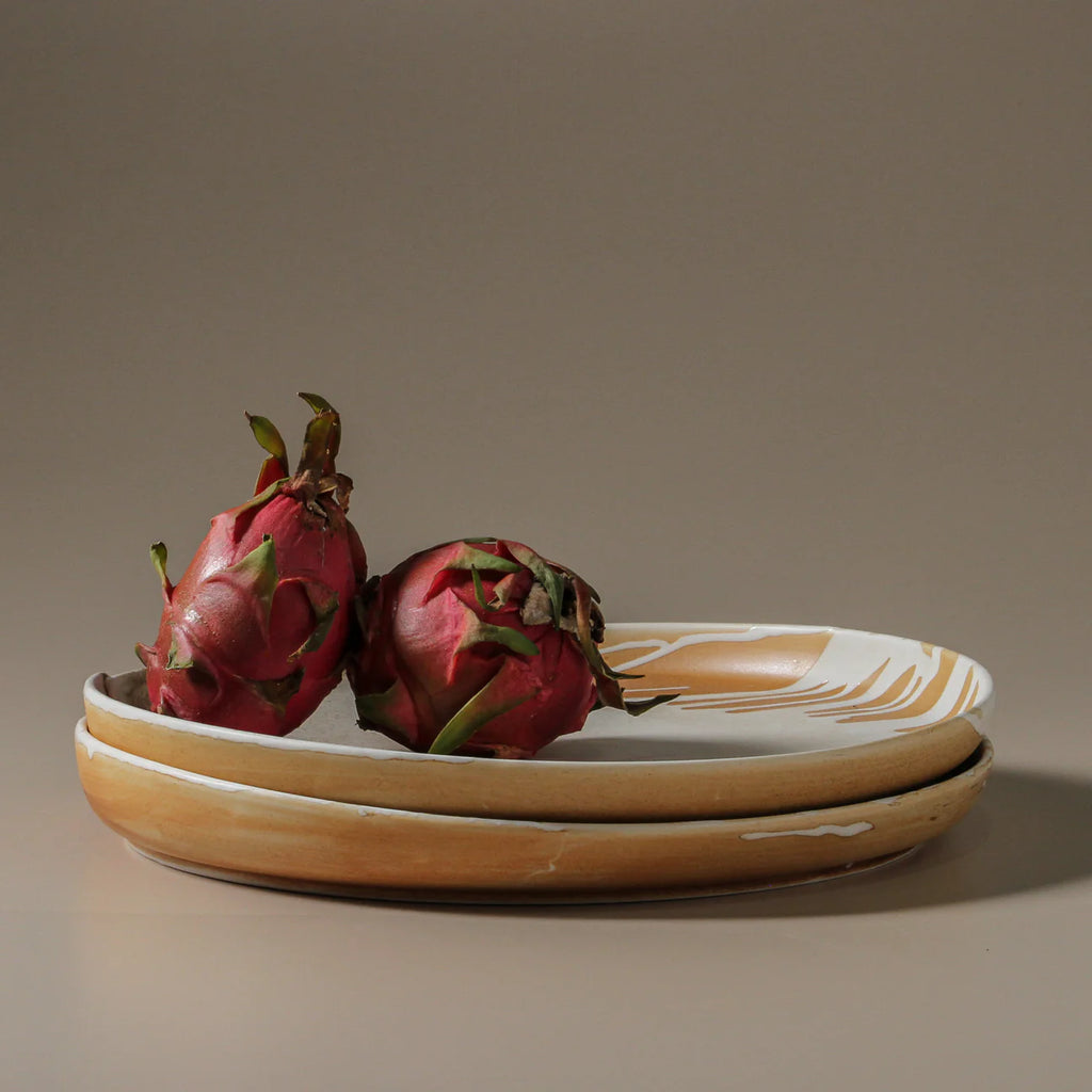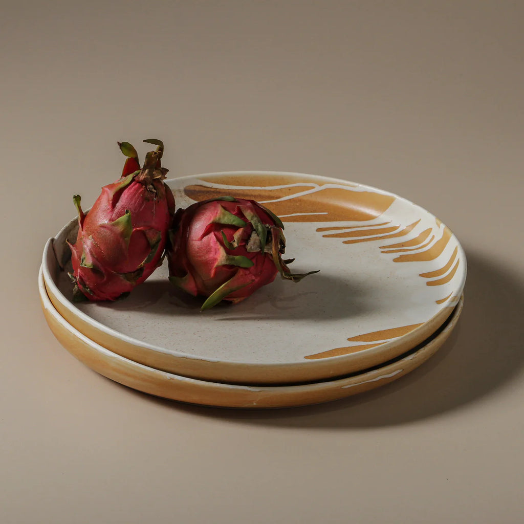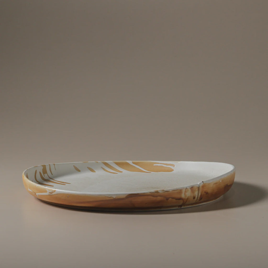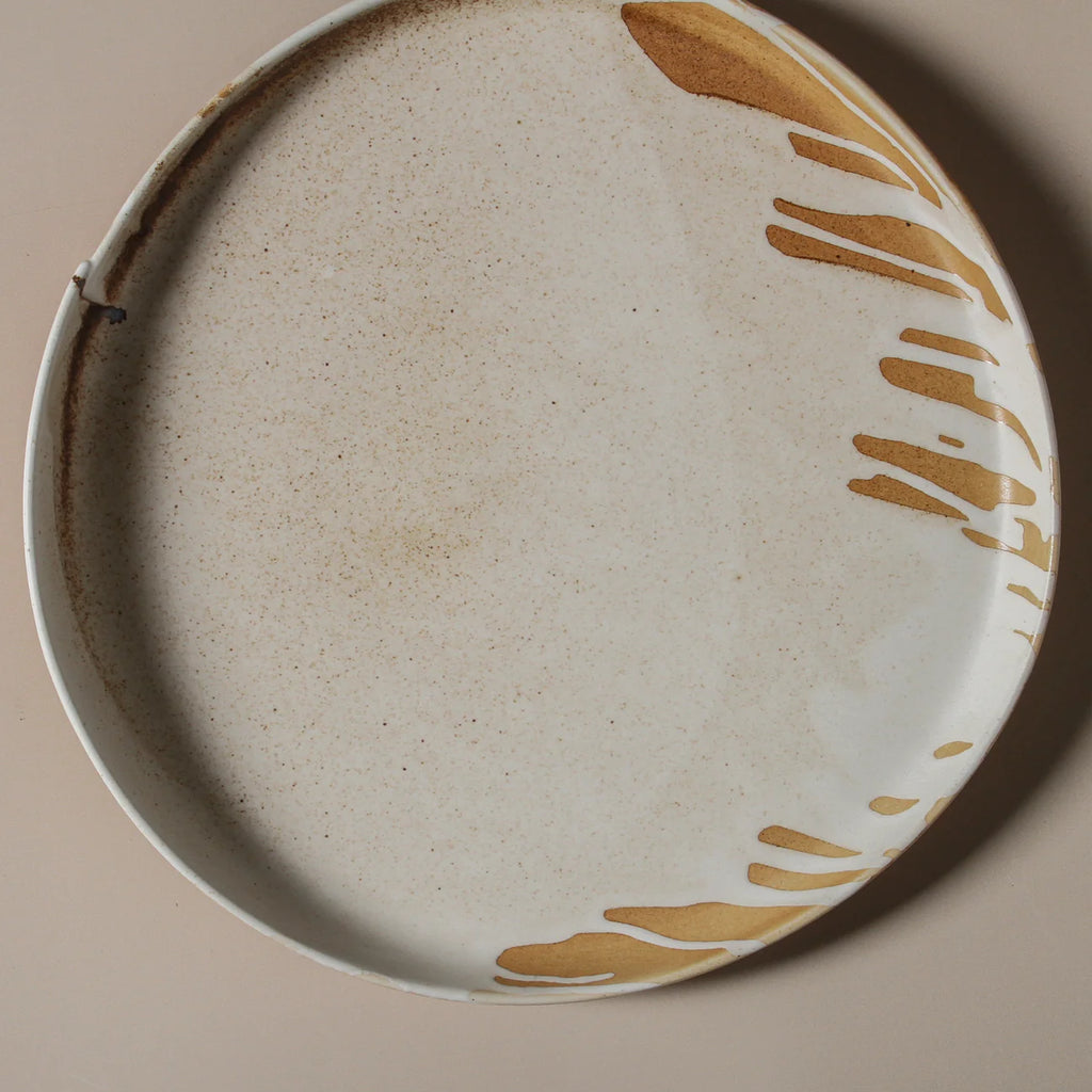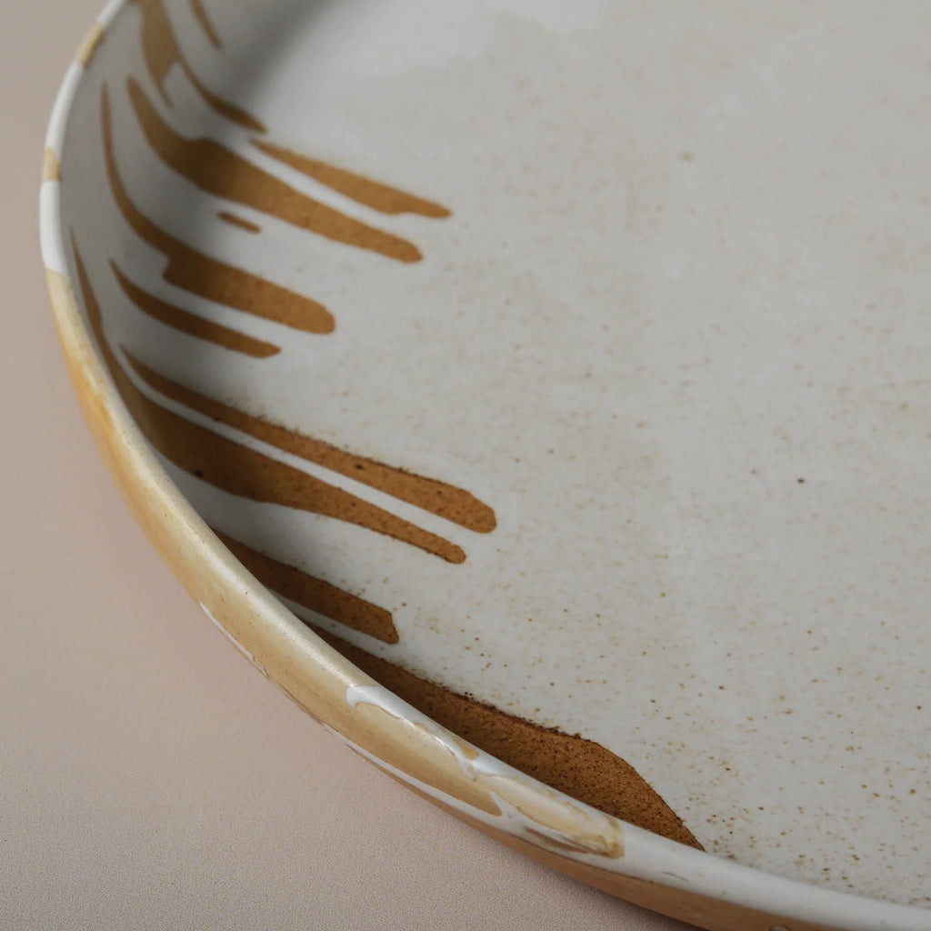 Crafted for both form and function, the Kintsu Deep Dinner Plate features a porcelain surface enriched with a reactive glaze reminiscent of water's soft ripples. Its earthy wheat tones are rooted in the Sense of Reality collection’s philosophy—capturing the essence of organic movement. Perfect for hearty meals, this plate invites moments of reflection in everyday dining.