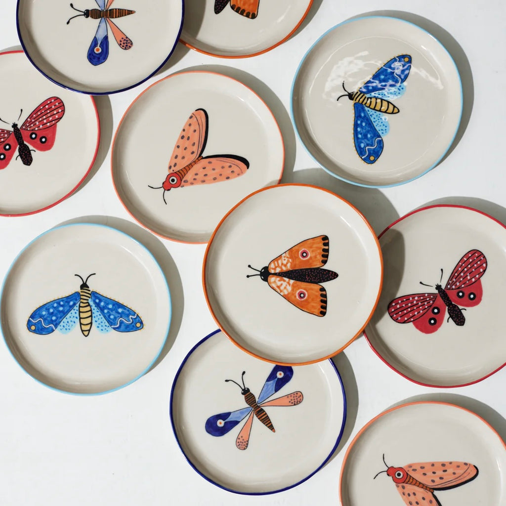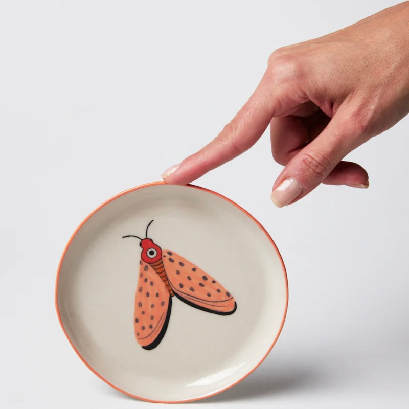 Celebrate nature's unsung heroes with these hand painted ceramic dishes showcasing intricate moth designs. Each rectangular dish depicts a different vibrant species by skilled artisans using specialty glazes. Extremely versatile for decorative vignettes, trinket dishes, or serving bites. Mix and match the one-of-a-kind high-fired stoneware pieces for a collected look celebrating these often overlooked creatures.