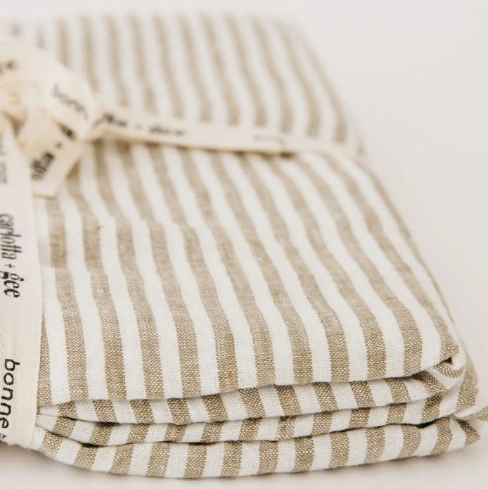 100% Linen Flat Sheet | Olive Stripes