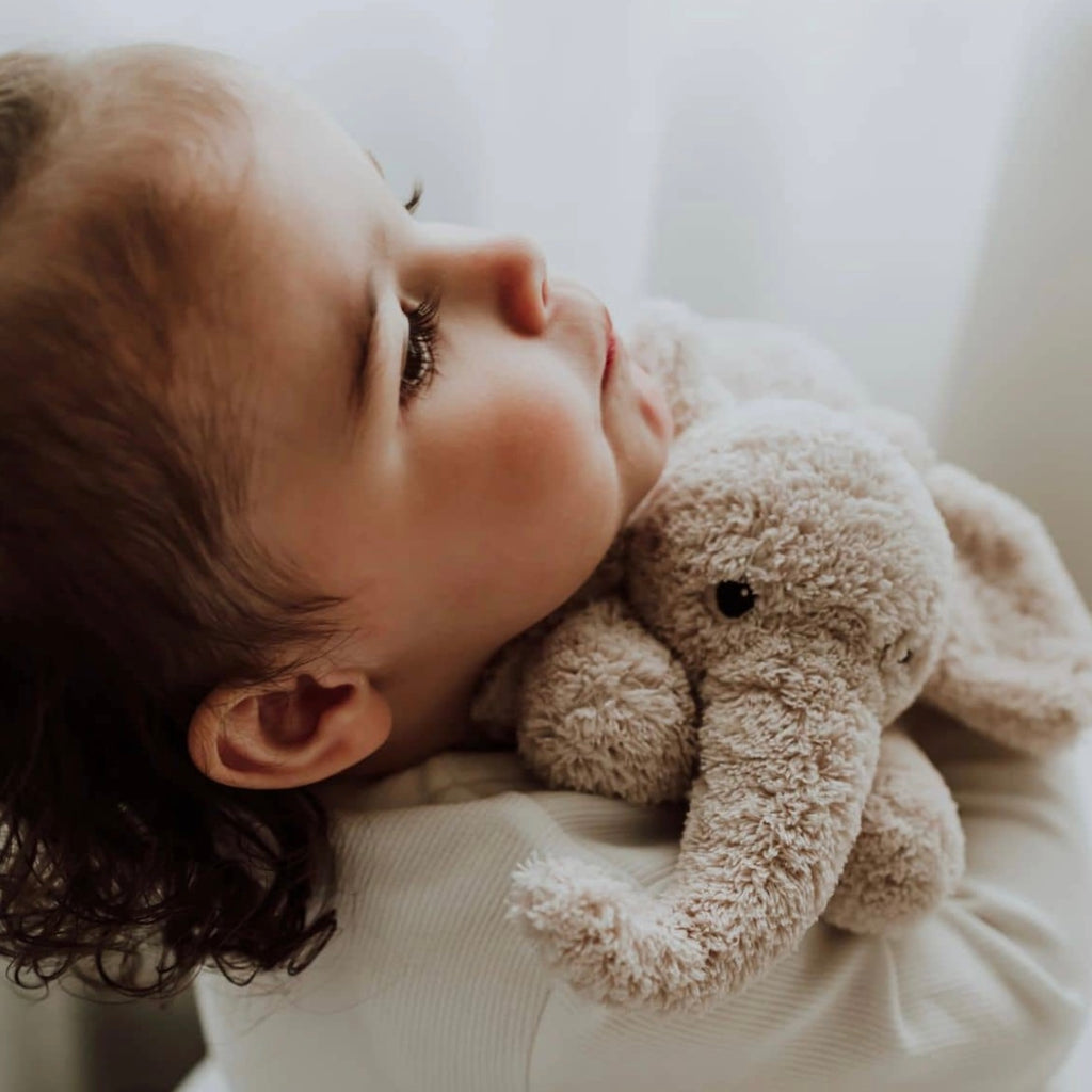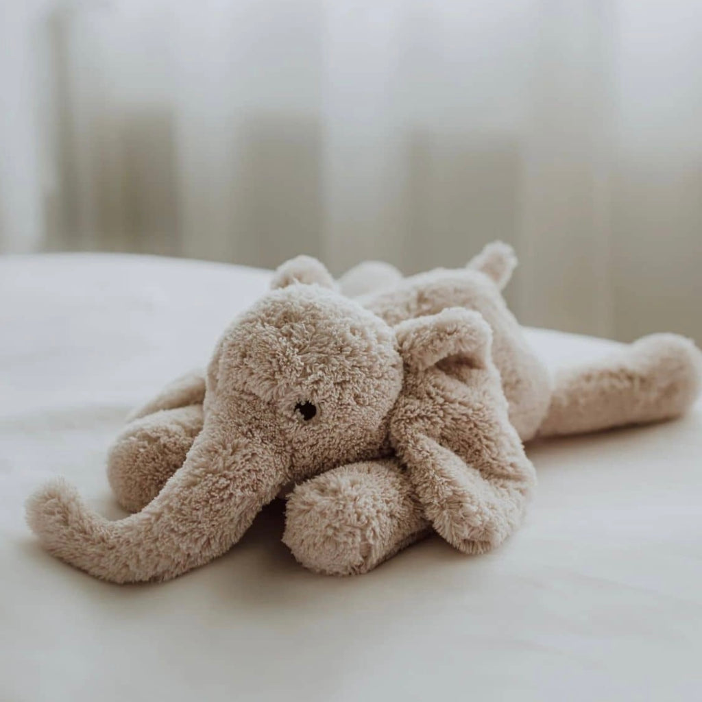 Did you know a baby elephant is called a calf? And that elephants can swim? They use their trunk as a snorkel to be able to breathe under water. Little Ebu here is the softest elephant you'll ever find. Ebu the Elephant is completely made of 100% recycled PET!