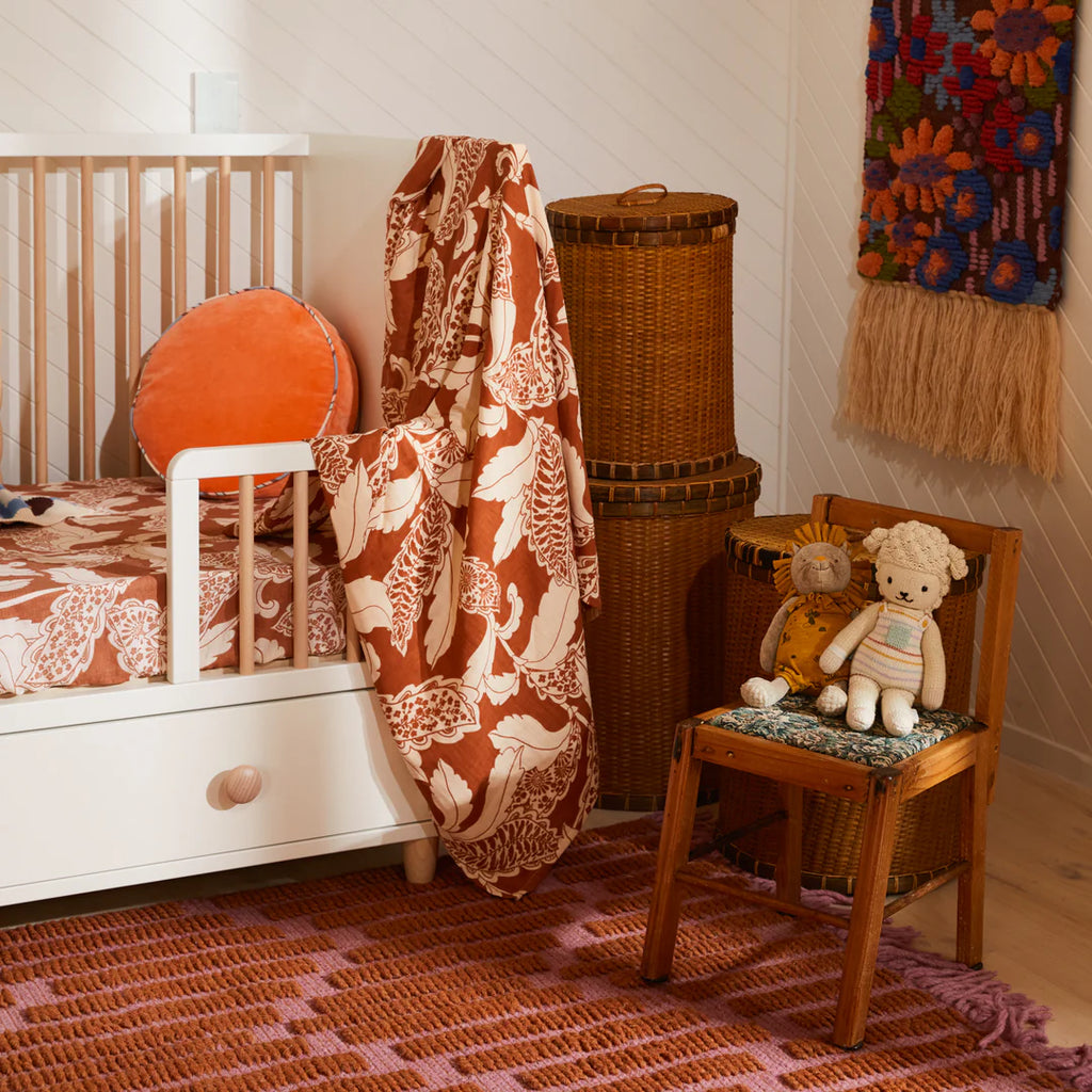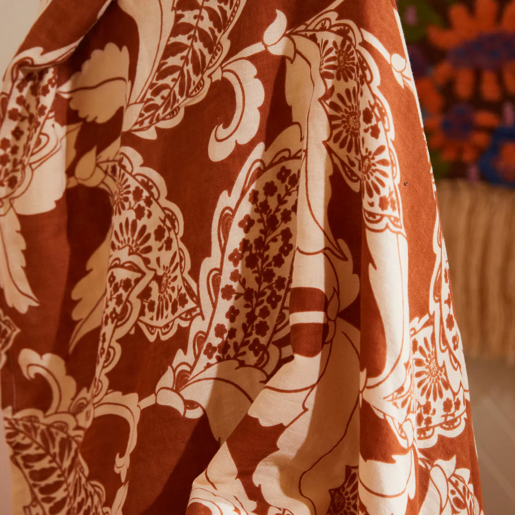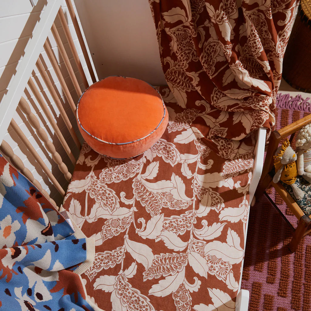 "Inspired by traditional Indian paisley designs and woodblock prints, Lata adds an artisanal touch to your space. The botanical pattern unfurls in tonal spice shades that warm the soul". – Phoebe’s Style Notes