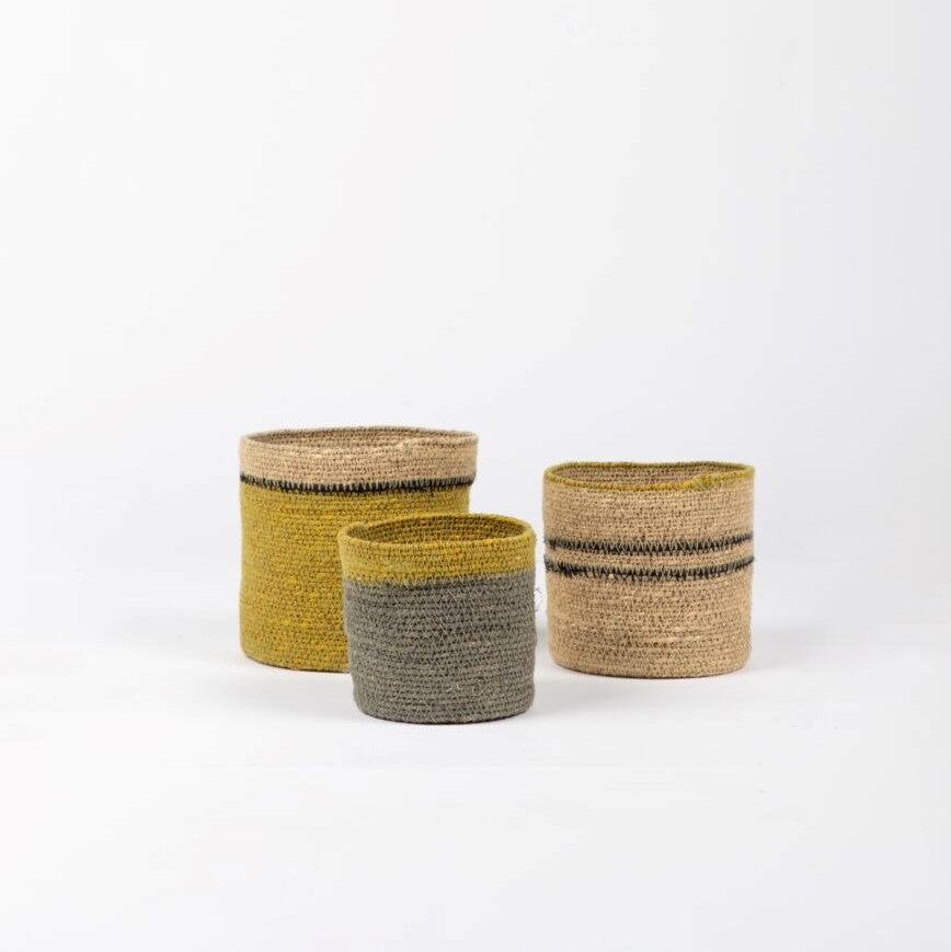 Handwoven in India from natural seagrass and cotton, these tight-weave baskets showcase a colour palette inspired by the natural world.
