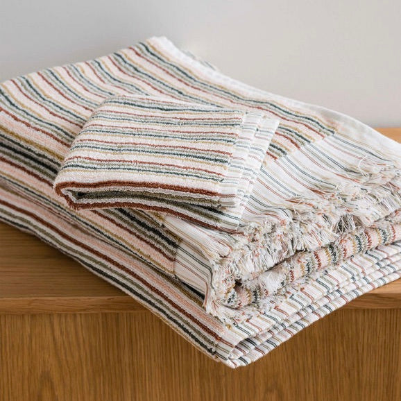 The Alice Cotton Bath Towel adds a subtle hint of colour to your bathroom with its multi-tone stripe and nostalgic vibe. Super soft and absorbent in pure, cotton.