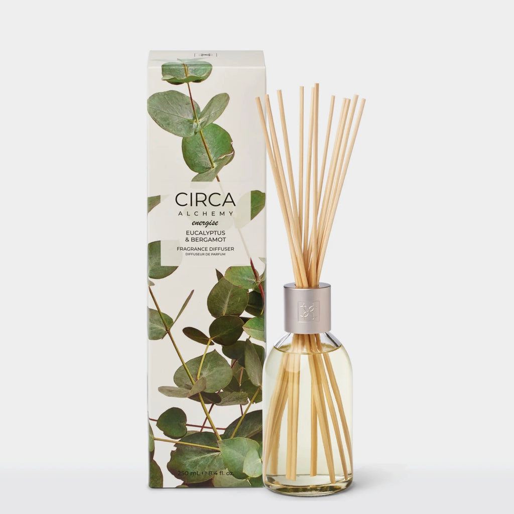 Refresh your space and awaken your senses with CIRCA 250ml Diffuser – Alchemy Energise – EUCALYPTUS & BERGAMOT. This vibrant fragrance blend pairs the crisp, clarifying notes of eucalyptus with the sparkling citrus brightness of bergamot. Designed to invigorate and uplift, it delivers continuous fragrance that energises your environment and inspires focus throughout the day.