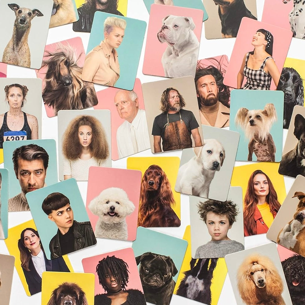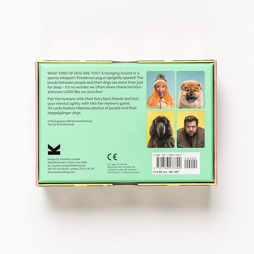 Pair up the dogs with their owners in this hilarious card game. Fifty cards depict fun photographs of the dogs and owners, and humorous texts are included in the booklet to provide clues about 25 people and their furry best friends. Why DO people look like their dogs Is it shared personality traits, barely suppressed narcissistic tendencies, or do they grow together over time like old married couples This game explores the intense bonds we develop with our dogs, which are far from only skin, or even fur, deep. Play as a memory game with the cards face down for added entertainment. Collect the most pairs to win! This is the perfect gift for dog lovers.