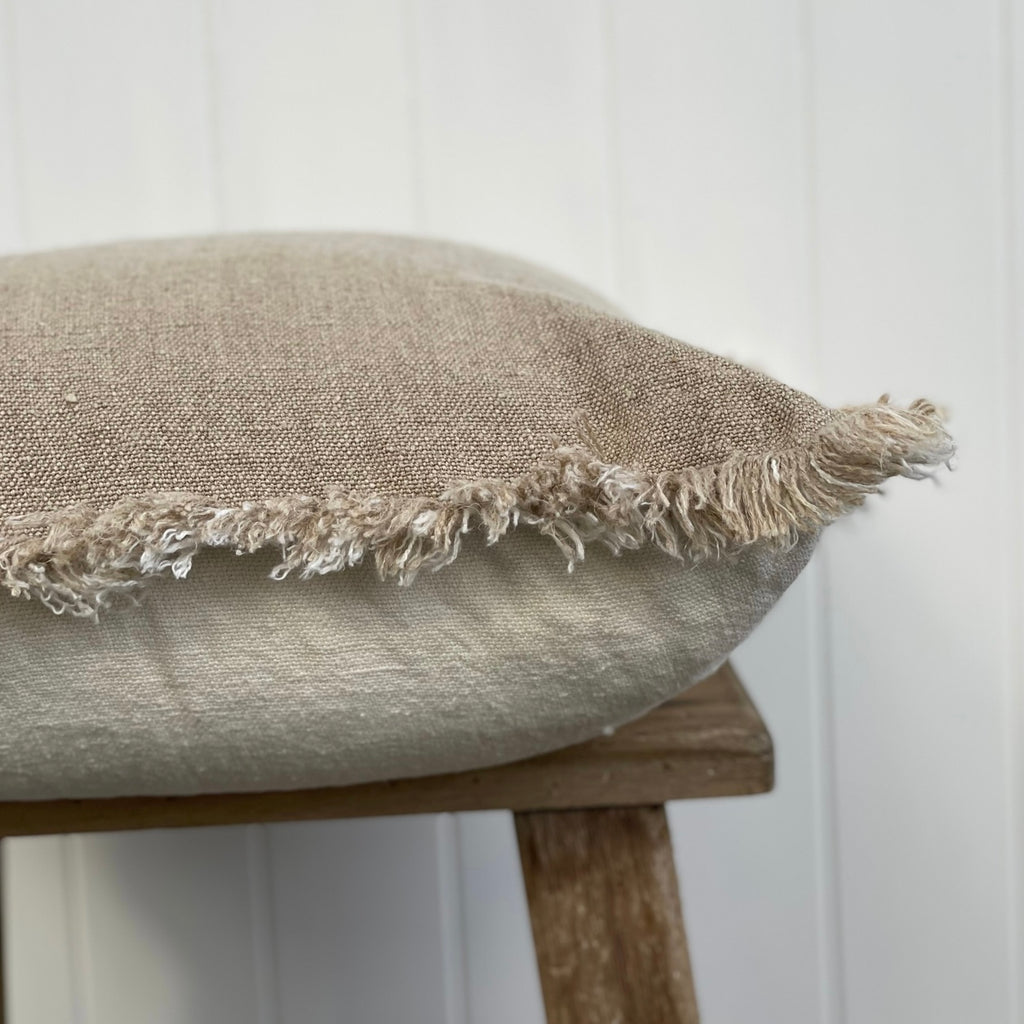 Briar Reversible Frayed Linen Cushion Cover - Natural & White