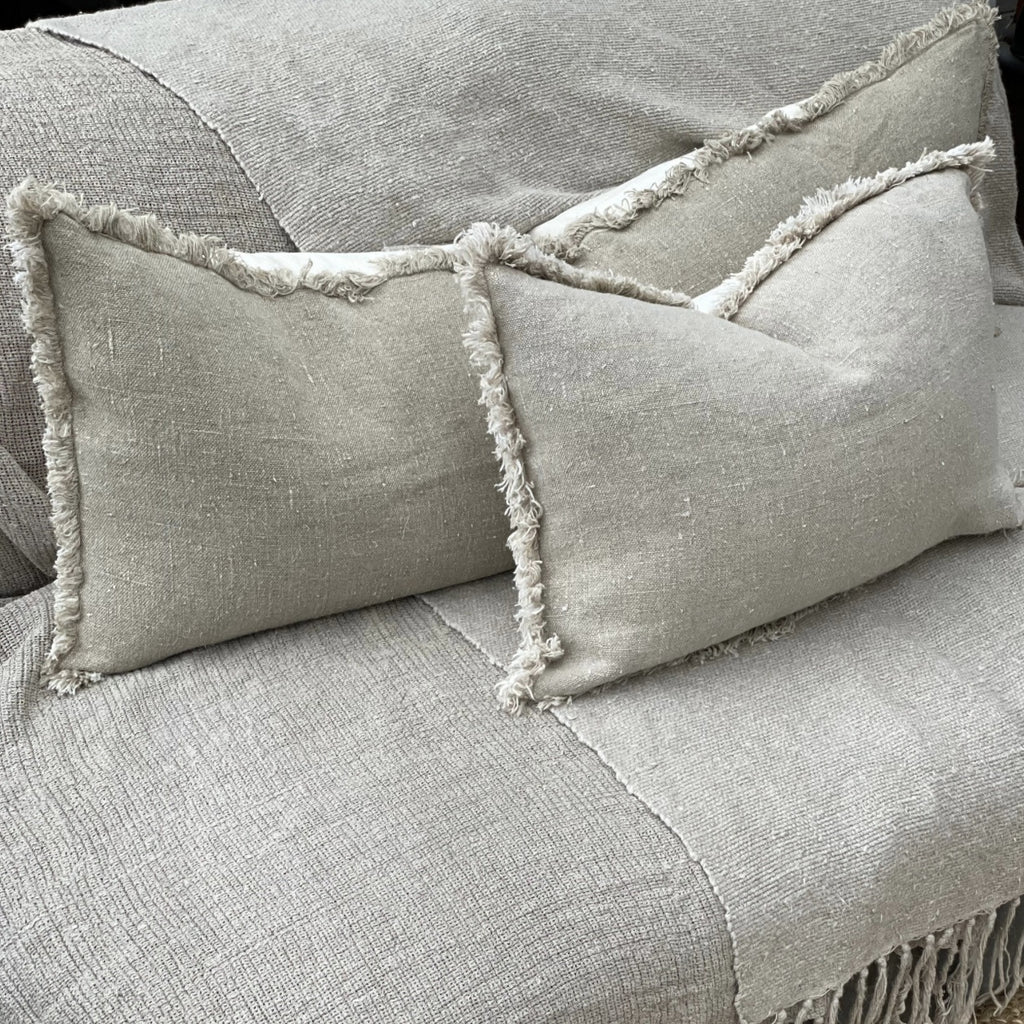 Briar Reversible Frayed Linen Cushion | Natural + White | 40 x 120 cm