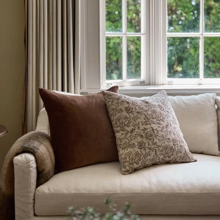The Cocoa Velvet Cushion exudes rich, earthy tones that bring warmth and timeless elegance to any space. With its deep, grounding hue, this cushion complements soft neutrals like ivory and off-white, while adding a touch of refined comfort. Perfect for creating a cosy and inviting atmosphere in any room.