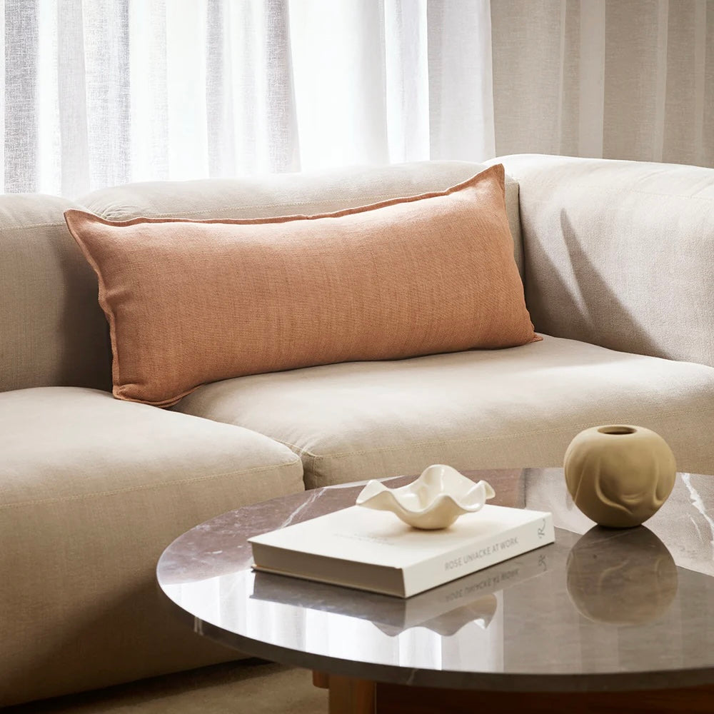 Construction: Handwoven, heavyweight textural weave in a long lumbar shape. Double-sided with 1cm flange edge.
