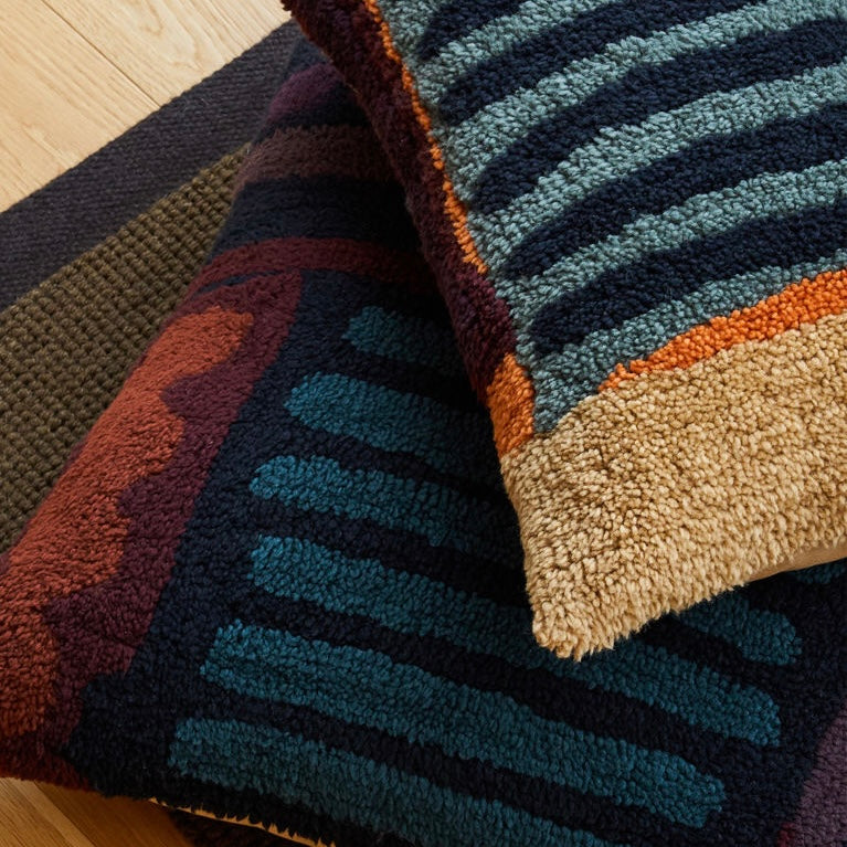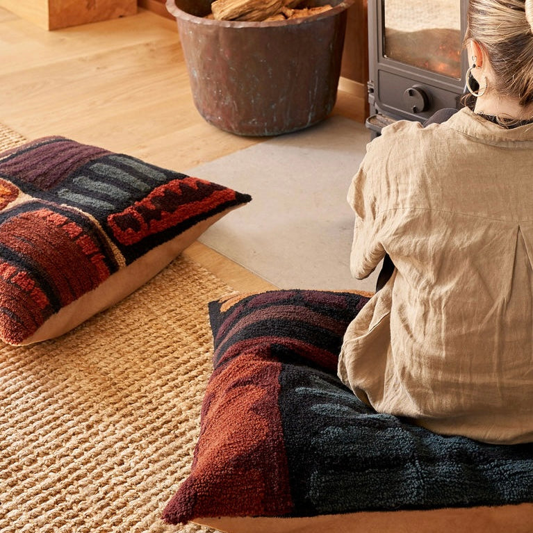 Enhance your home with colours and textures reminiscent of bygone eras. The Astrid woollen floor cushion cover takes cues from the bold, cosy interiors of the 1960s and 1970s.