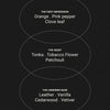 Journey to a decadent sanctuary and envelop your senses with intense and distinguished accents of Tabac & Cedar Wood. An artisanal, signature scent, composed of spiced orange, black suede and tanned leather layered on a heart of tobacco flower and resinous tonka. Laden with deep animalistic textures and enhanced by a harmonic base of warm cedar wood and indulgent liquid vanilla.