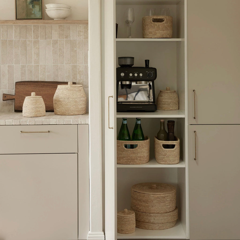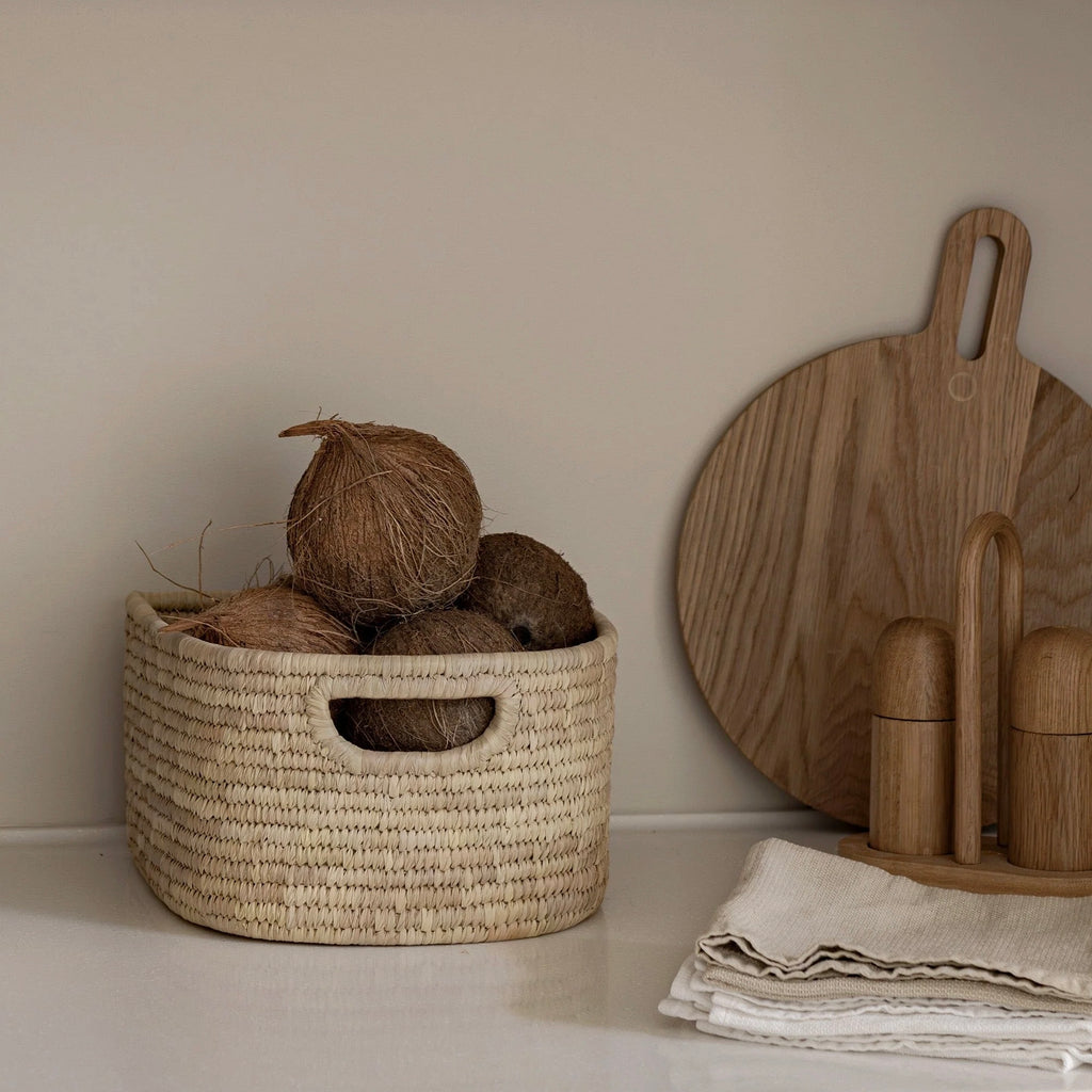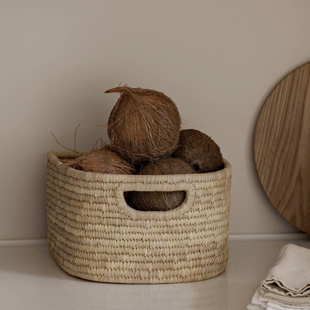 Solve your everyday storage needs in style with this beautifully handwoven Sakoa storage basket, thoughtfully designed to bring both function and warmth to your home. Crafted from natural palm fibre, its neutral tone and woven texture complement a wide range of interiors, ensuring effortless styling on shelves, benchtops, or inside cabinets.