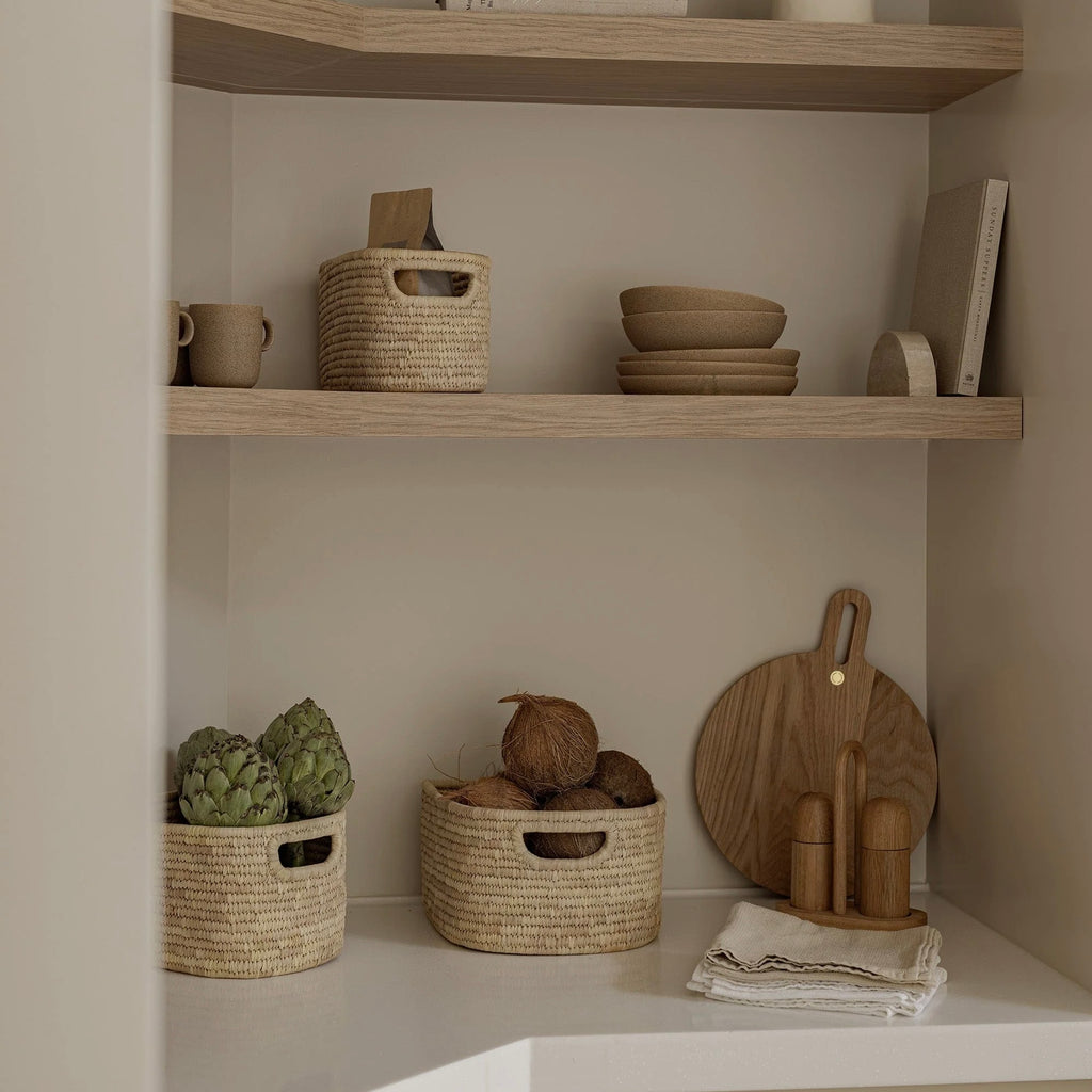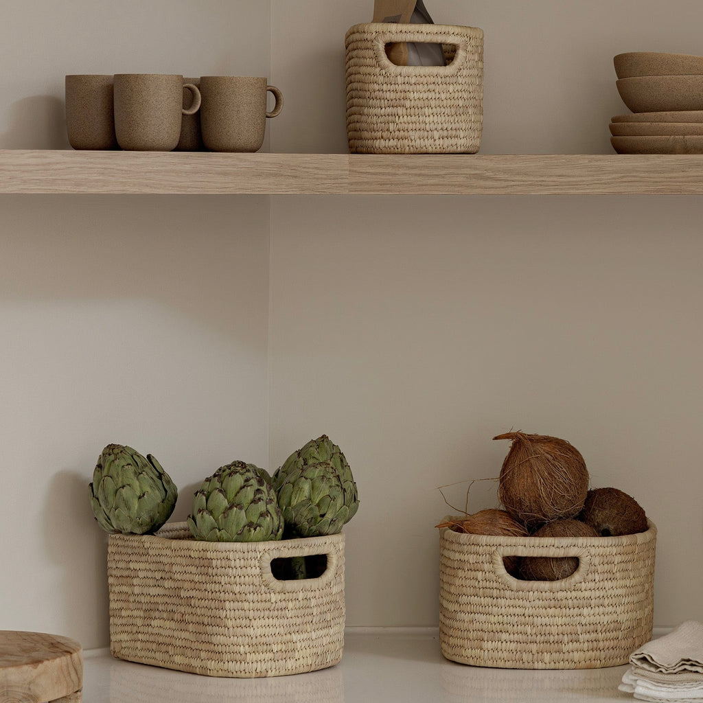 Available in three sizes, all baskets share the same depth, making them ideal for lining up neatly on a shelf in multiples. Their varying widths allow you to customise your storage setup, creating a cohesive and tailored look for your space—perfect for corralling everything from snacks and spices to beauty products and small toys.