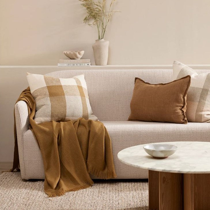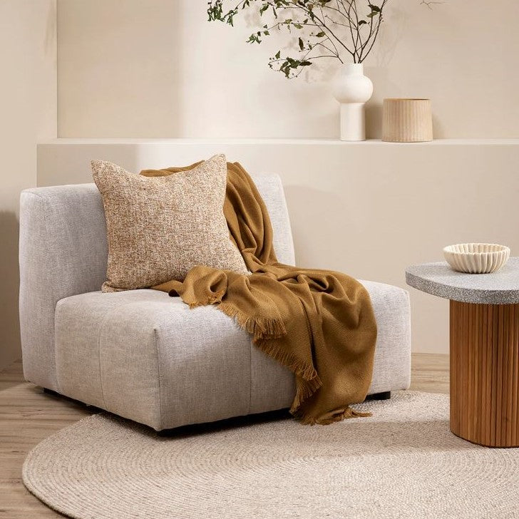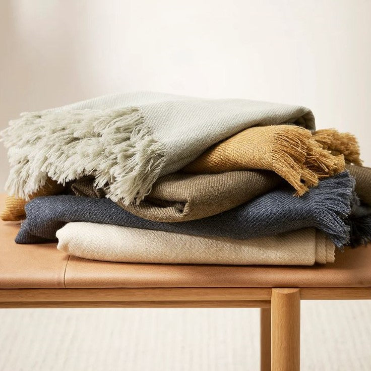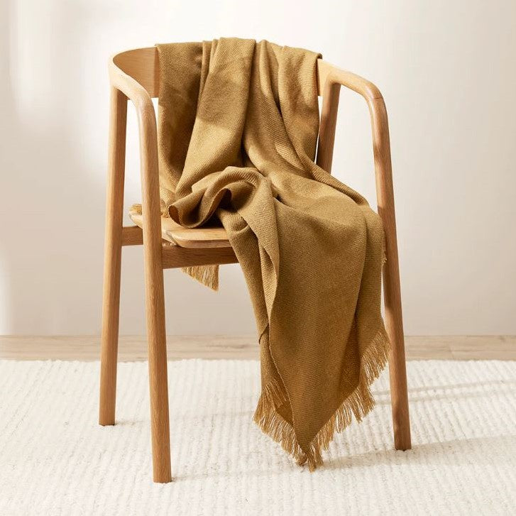 Add a pared-back accent to your space with the lightweight softness of Altona. Finely woven from a blend of wool and recycled polyester, the solid colour and delicate fringe edge makes this piece easy to style into most interior schemes. The perfect throw for adding warmth and contrast to interior spaces.