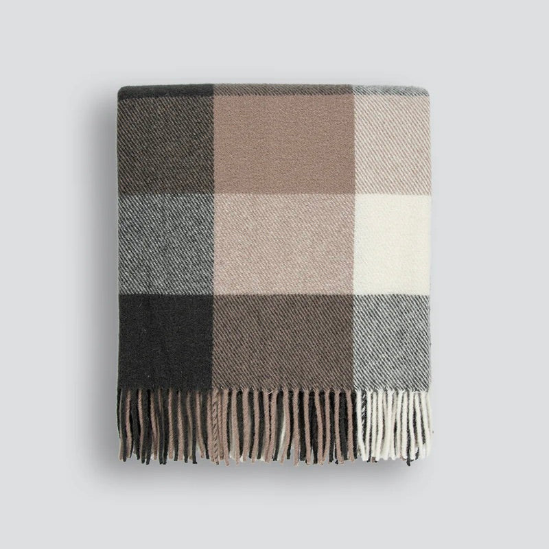 New Zealand design and craftsmanship are celebrated in this luxurious, pure wool throw. Locally woven, the Glenburn features a contemporary plaid in tones of blush, forest-green and fawn. Generously sized, each throw is finished with a traditional twisted fringe.