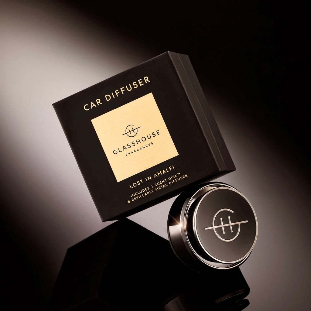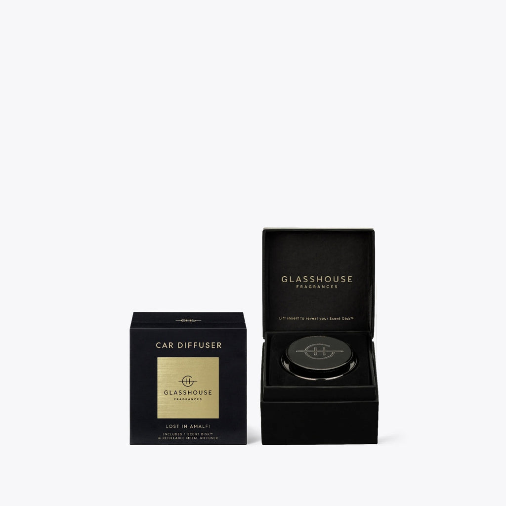 Contains: 1 x Lost in Amalfi Scent Disk™ and 1 x Refillable Black/Black Metal Diffuser.