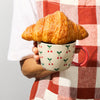 Light blue stripes hug the interior of this hand-cast mug, while the phrase "Mon Cherie" waits at the bottom a small endearment between you and your morning brew. The vibrant red handle and hand-painted cherries on the exterior creates a playful contrast that speaks to our Sydney design teams love of thoughtful colour combinations and the skill of our Vietnamese artisans.