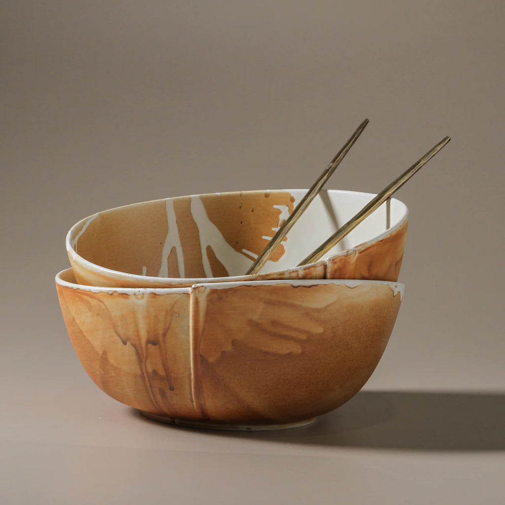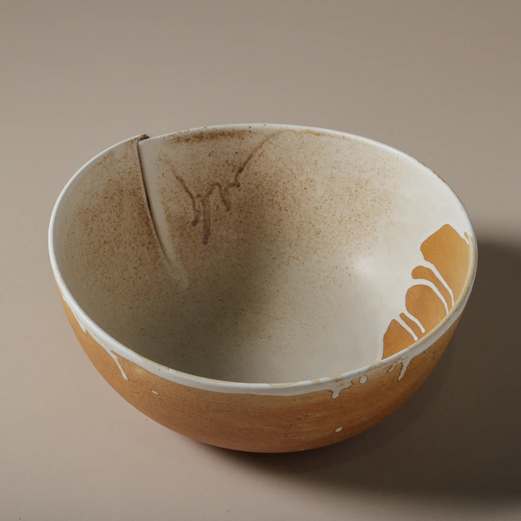 The Kintsu Large Bowl makes a statement with its generous size and liquid-like glaze. Designed as a centrepiece or a serving piece for gatherings, its porcelain form captures the earthy tones of wheat and clay. Reflecting the Sense of Reality Collection’s philosophy, this bowl is an artistic celebration of organic textures and flowing forms.