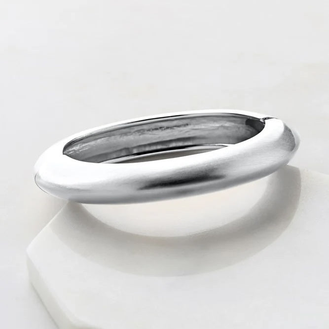 Make a statement with the Olivia Brushed Bracelet, a bold chunky bangle featuring a convenient spring closure. Finished with our distinctive brushed texture, this bracelet is perfect for wearing solo for a sleek, modern look or stacking with our Ally and Nara bracelets to create a striking layered effect. Its versatile design and textured finish make the Ally Brushed Bracelet a standout piece in any jewellery collection.